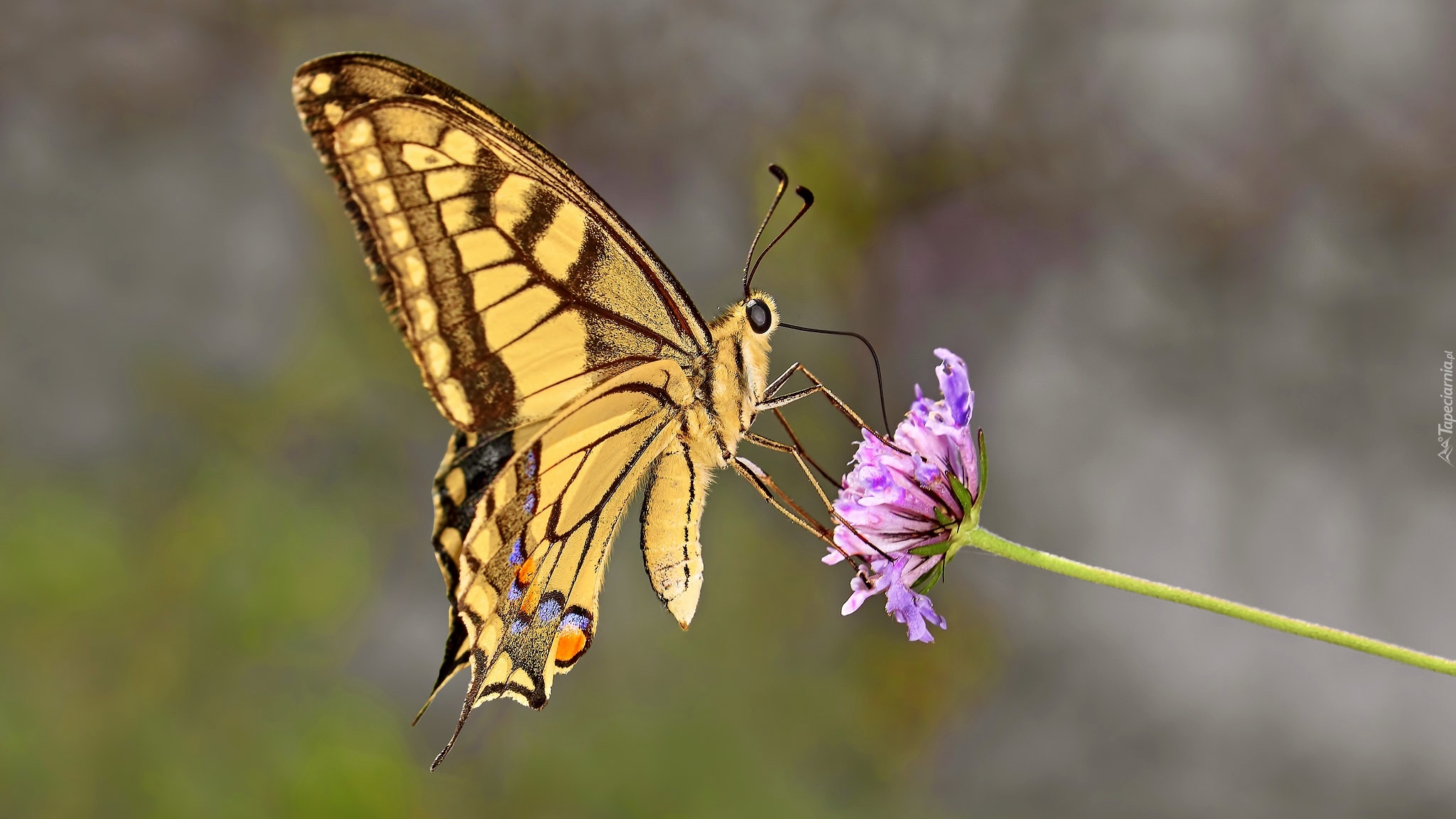 Edytor tapety: Paź królowej na fioletowym kwiatku