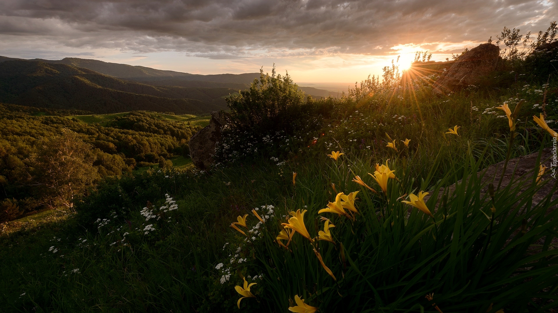 Edytor tapety: Lilie na stokach gór w słońcu