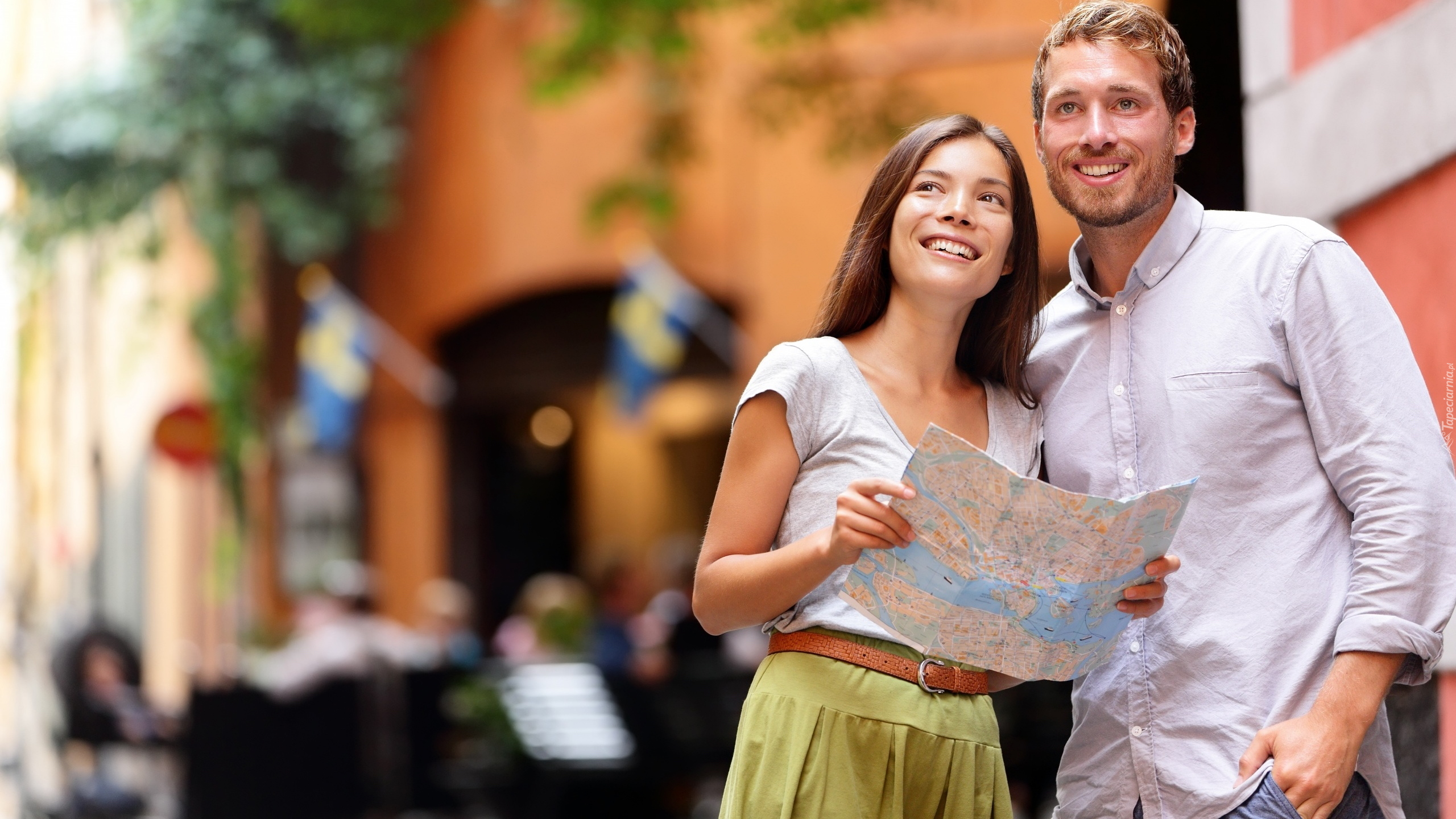 Edytor tapety: Para turystów z mapą