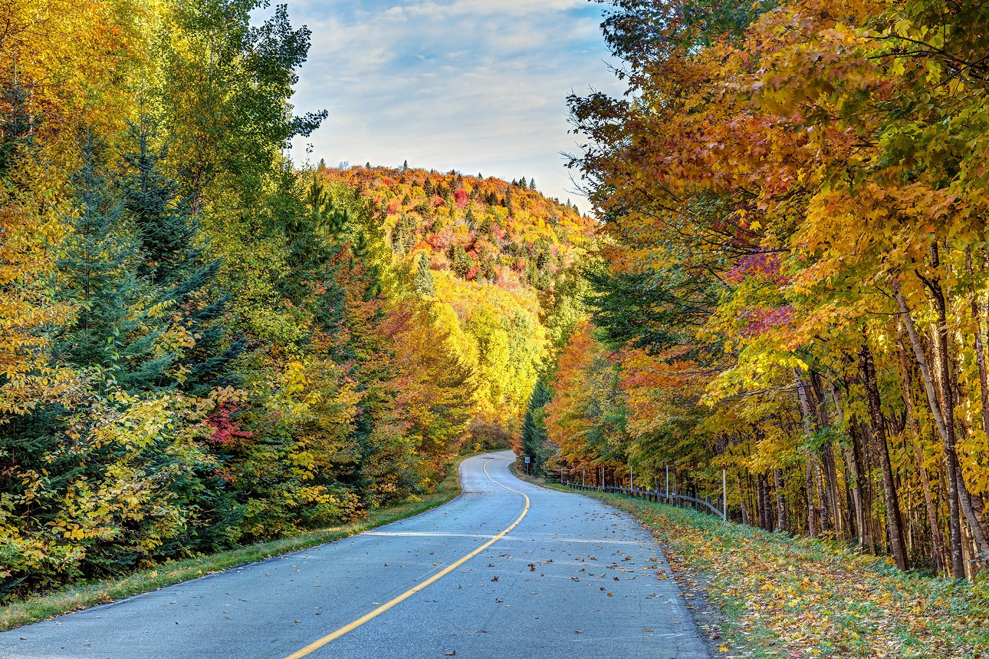 Edytor tapety: Asfaltowa droga wśród jesiennego lasu