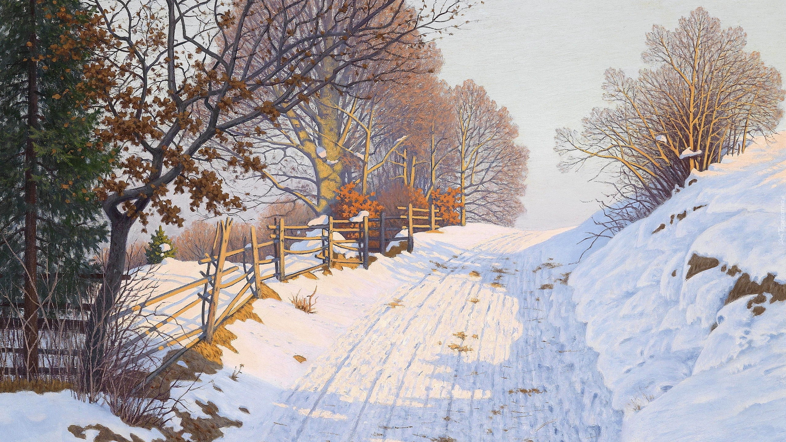 Edytor tapety: Zima na obrazie niemieckiego malarza Fritza Muller-Landecka