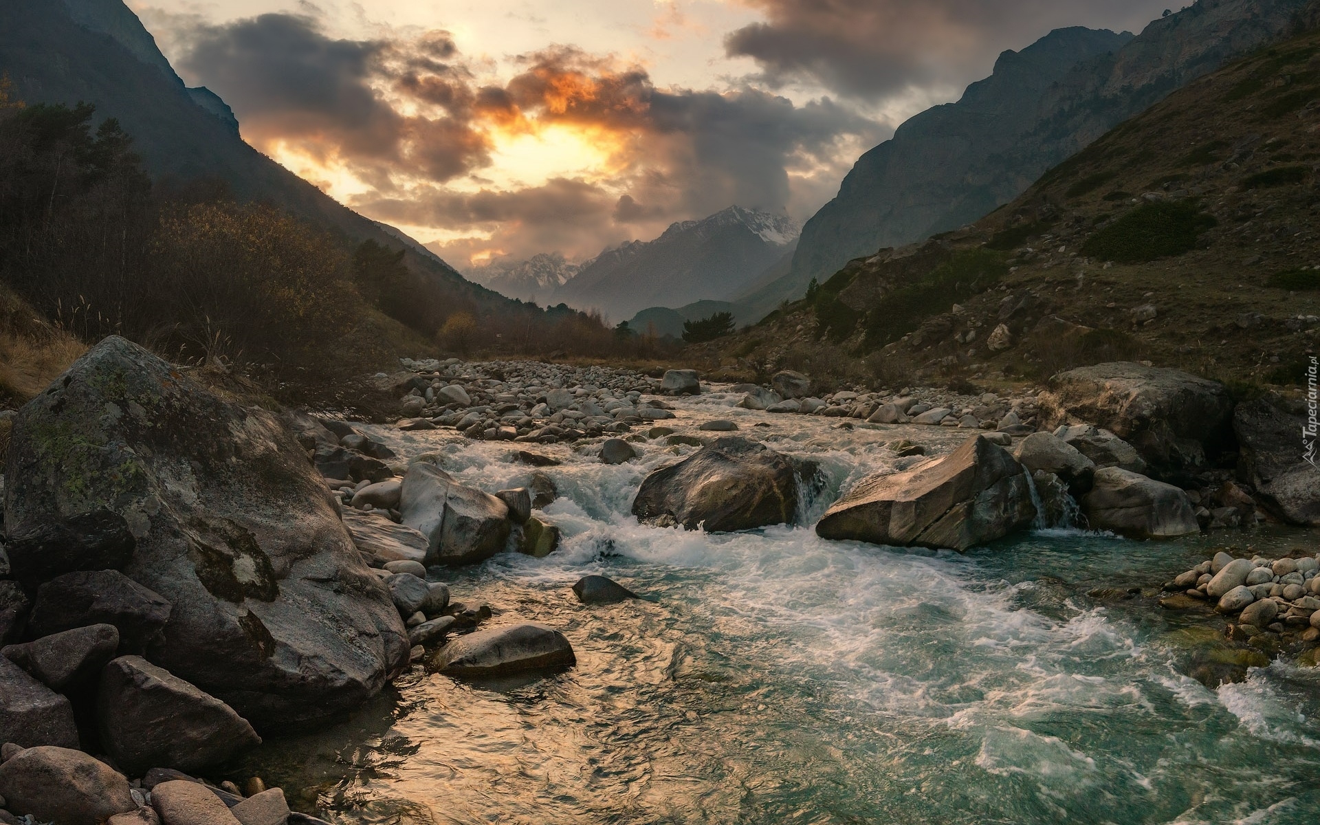 Edytor tapety: Głazy i kamienie w górskiej rzece