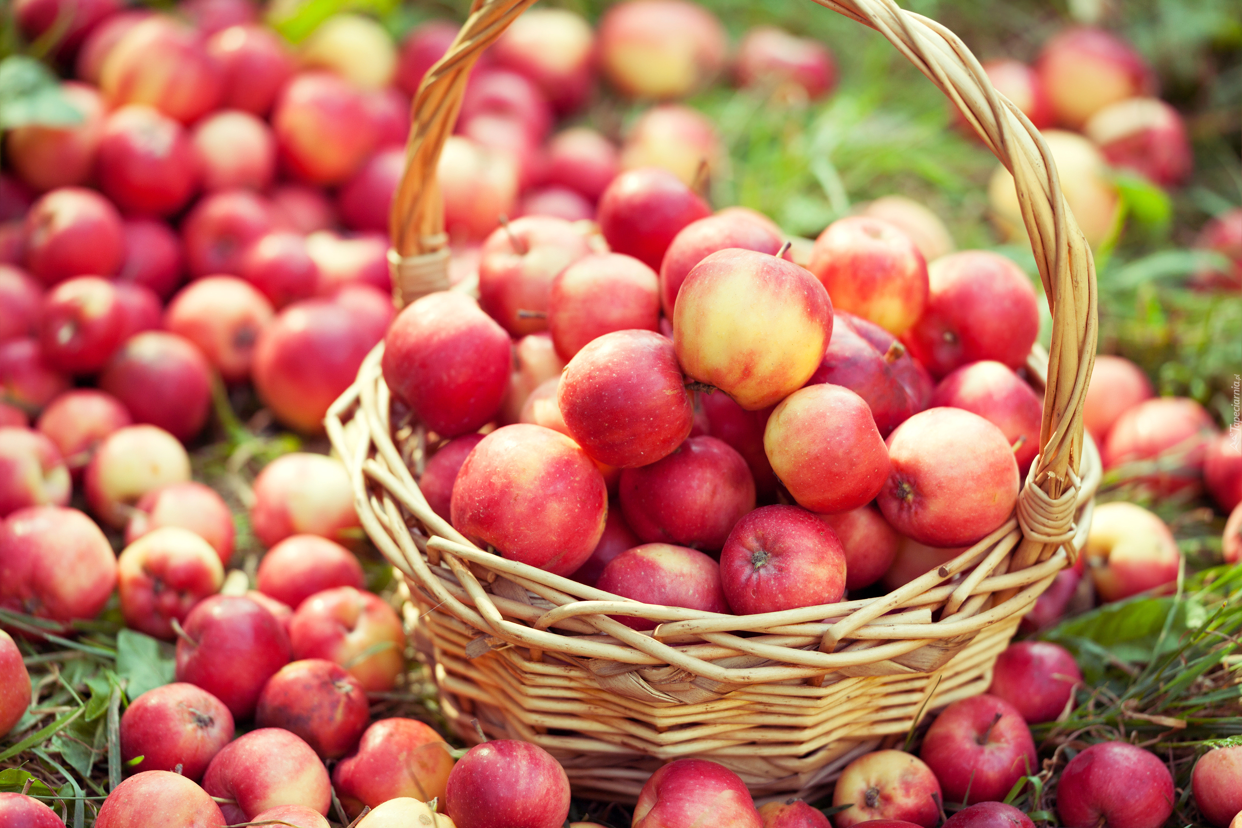 Edytor tapety: Jabłka na trawie i w koszu