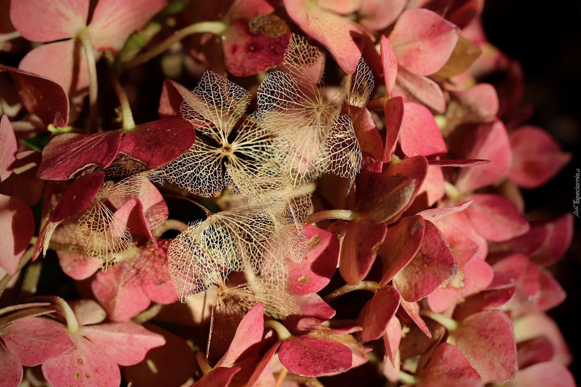 Edytor tapety: Czerwona hortensja w zbliżeniu
