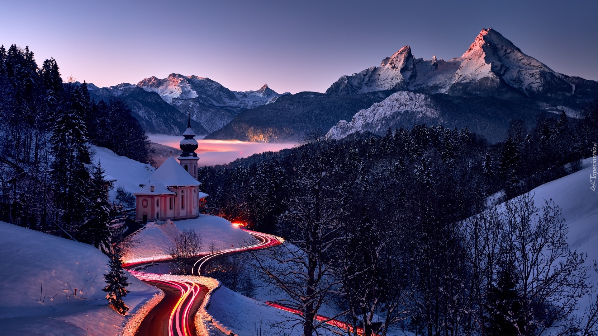 Edytor tapety: Oświetlona droga do Sanktuarium Maria Gern w Bawarii