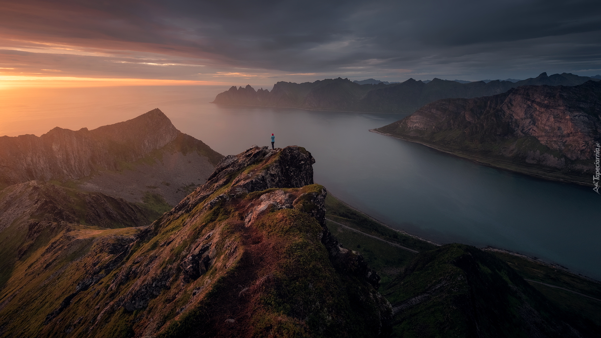 Edytor tapety: Postać na szczycie góry Husfjellet