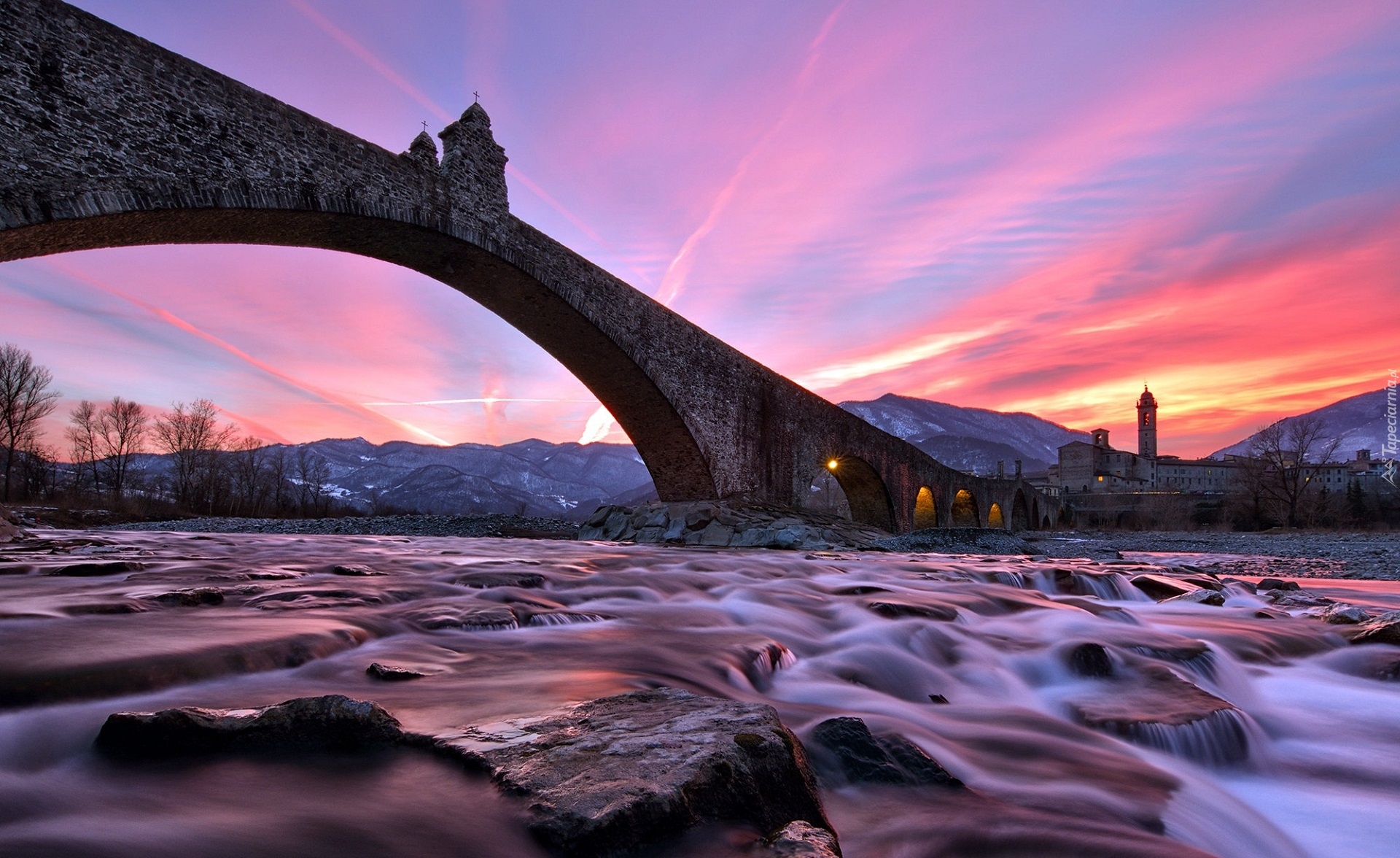 Edytor tapety: Most Gobbo nad rzeką Trebbia we Włoszech