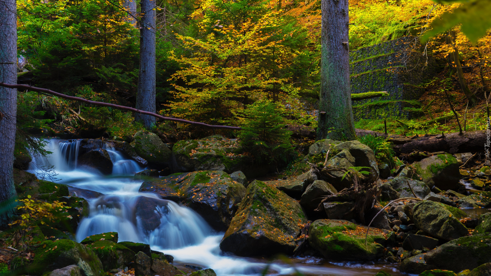 Edytor tapety: Omszałe kamienie w leśnym strumieniu