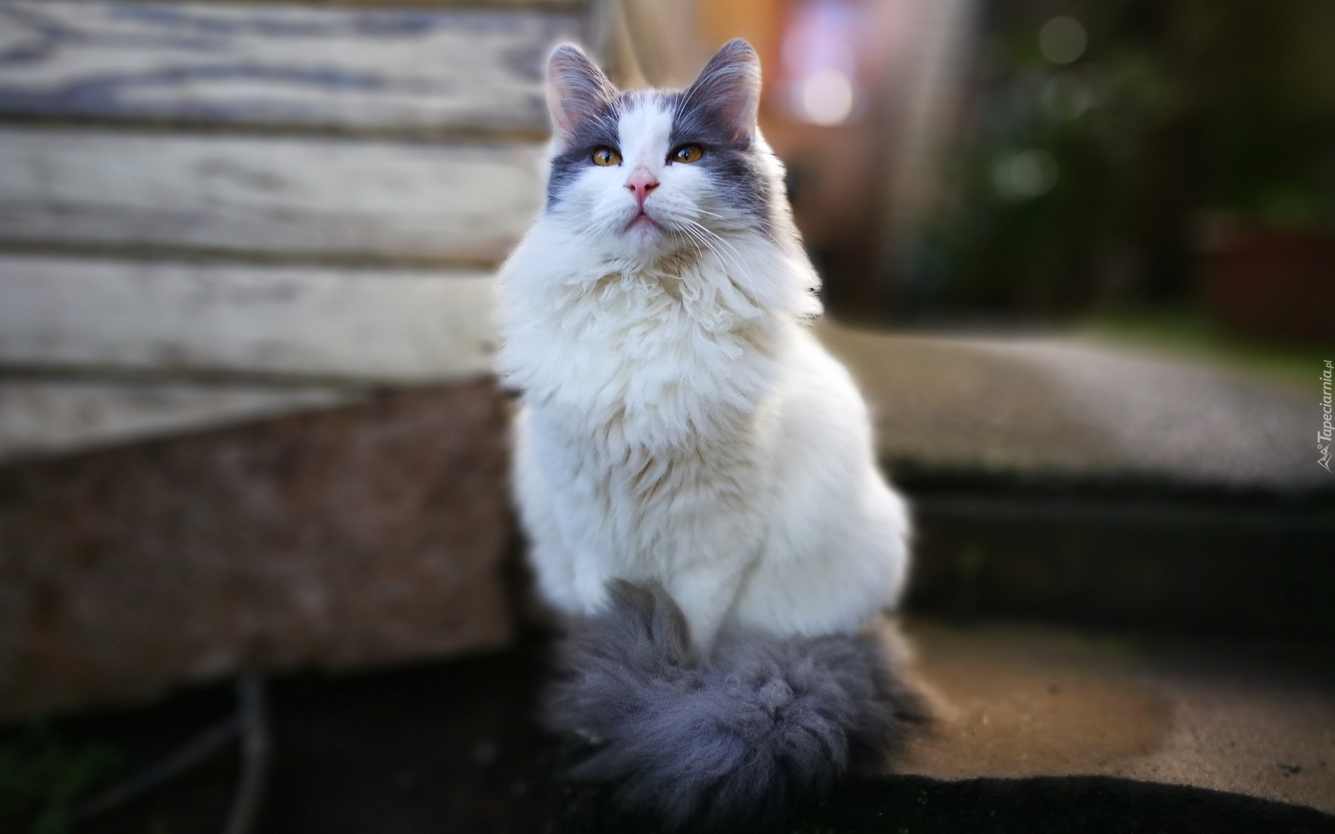 Edytor tapety: Długowłosy biało-szary kot