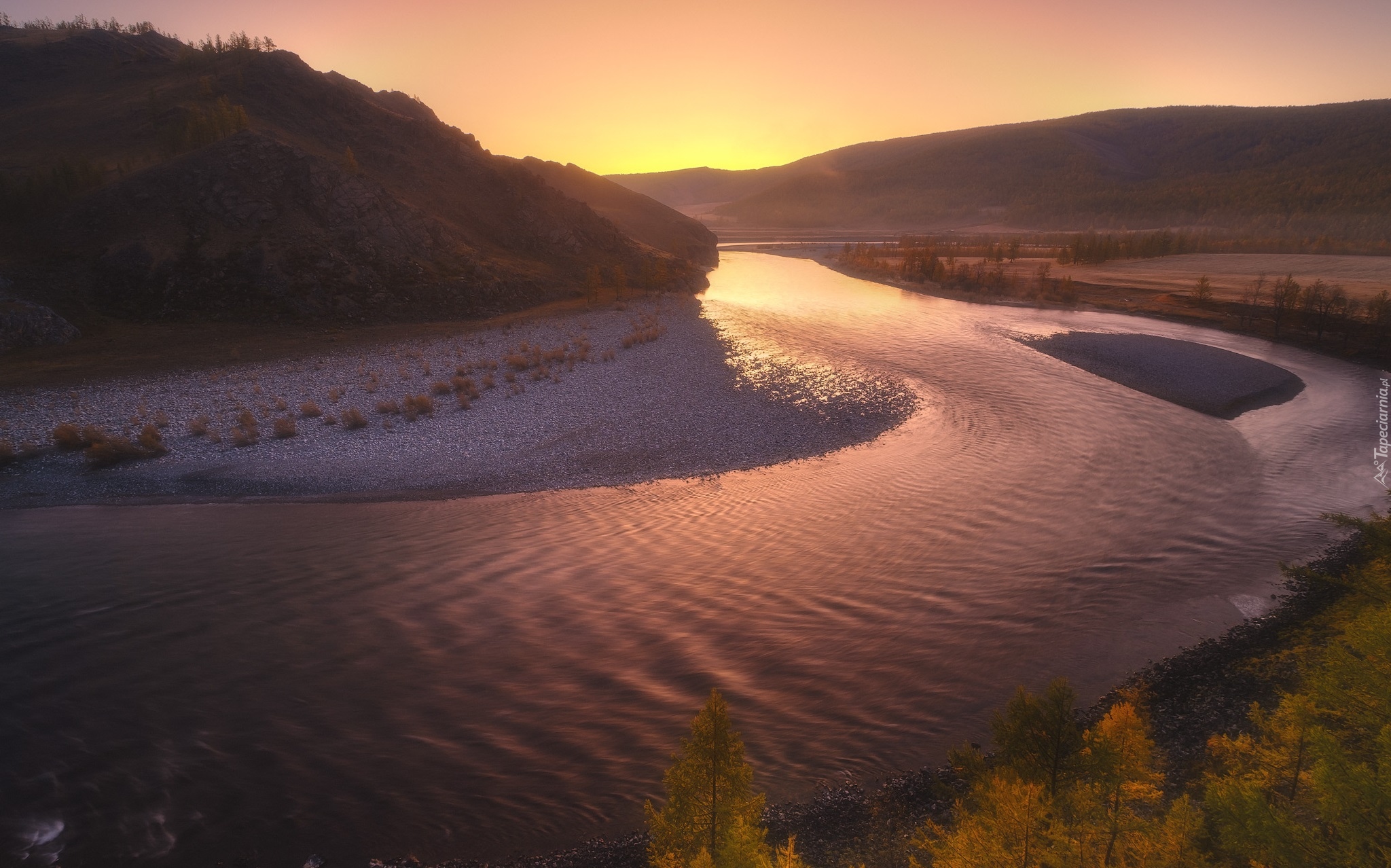 Edytor tapety: Zakole rzeki o zachodzie słońca