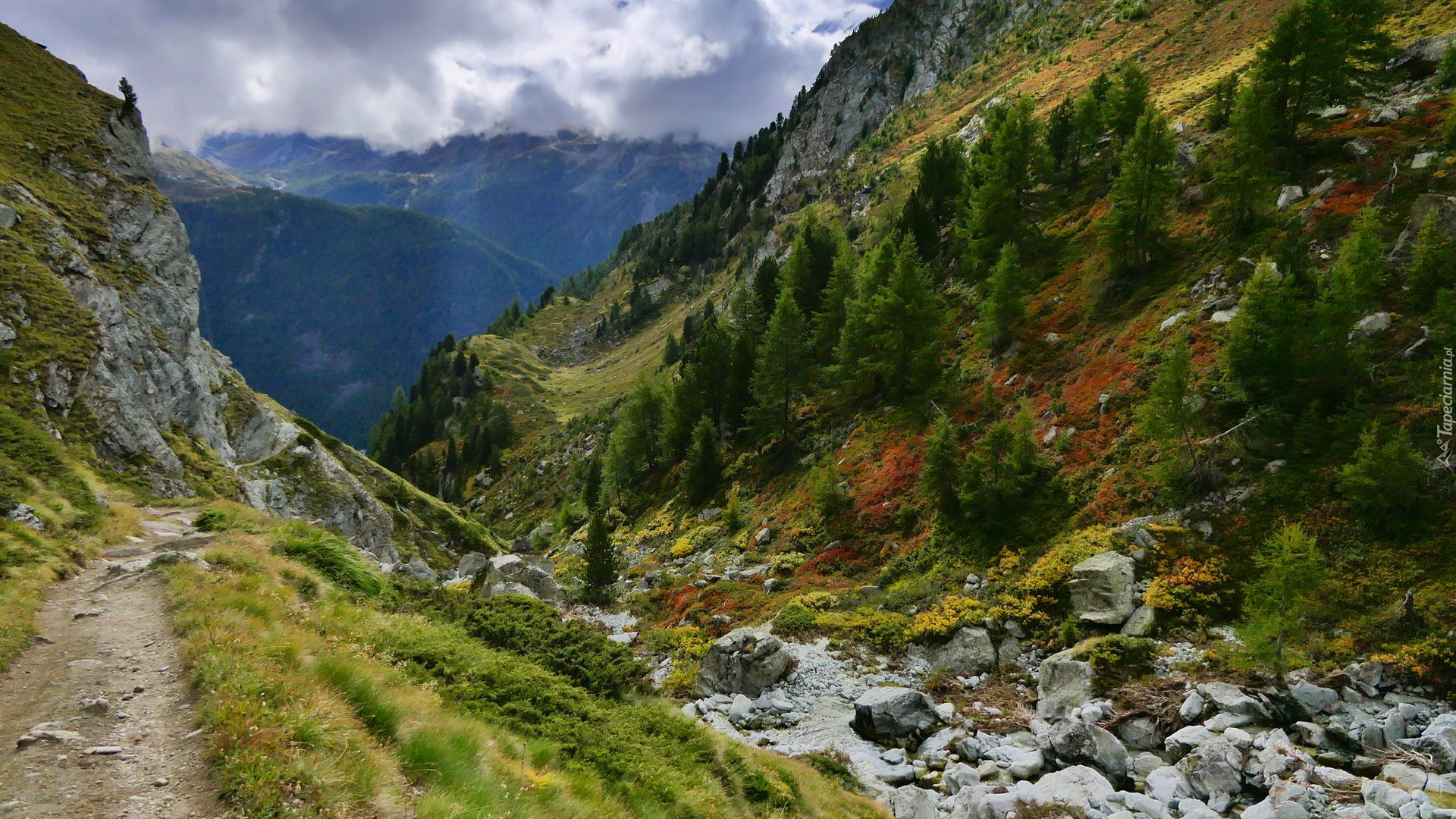 Edytor tapety: Górska ścieżka obok skał i kamieni