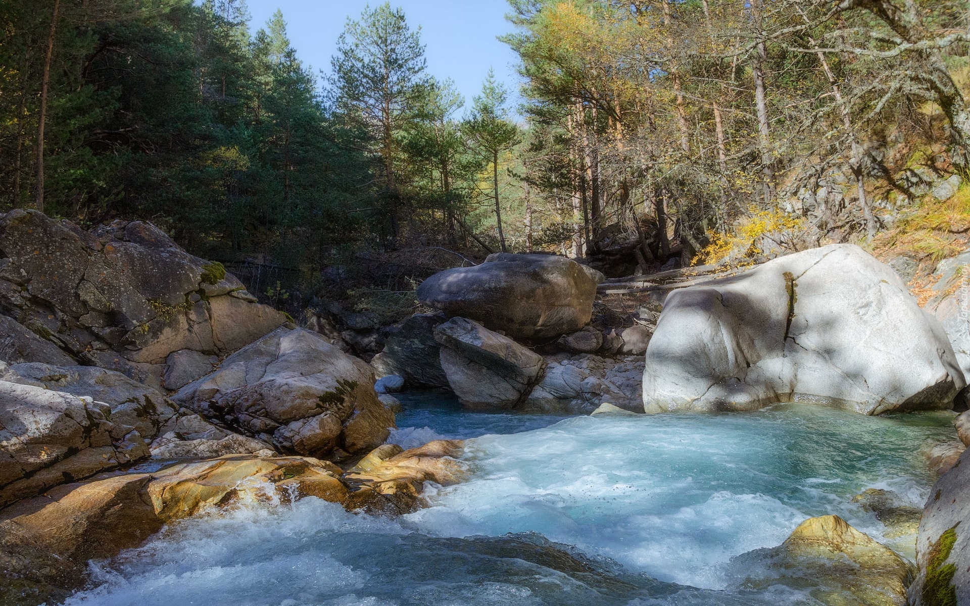 Edytor tapety: Głazy i kamienie w leśnej rzece