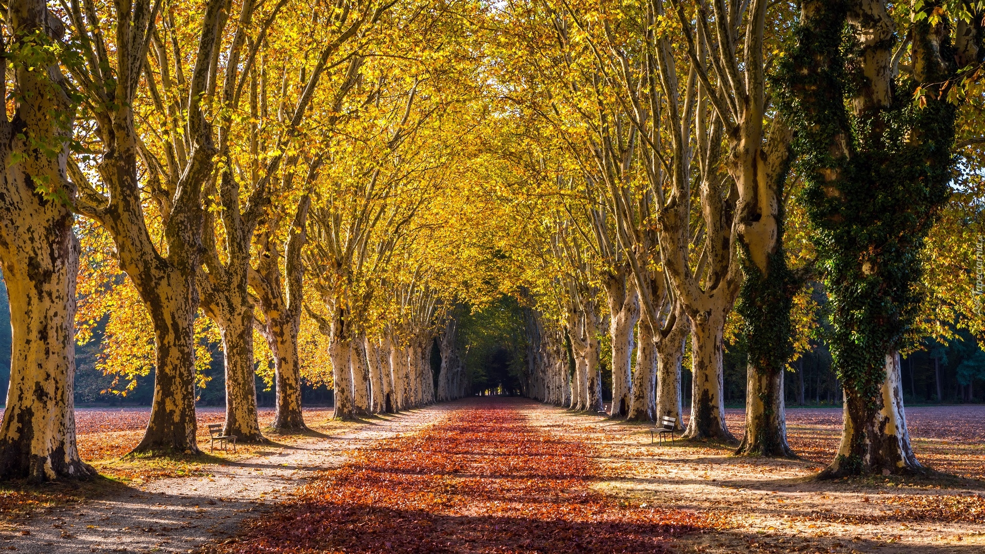 Edytor tapety: Aleja pośród topoli białych