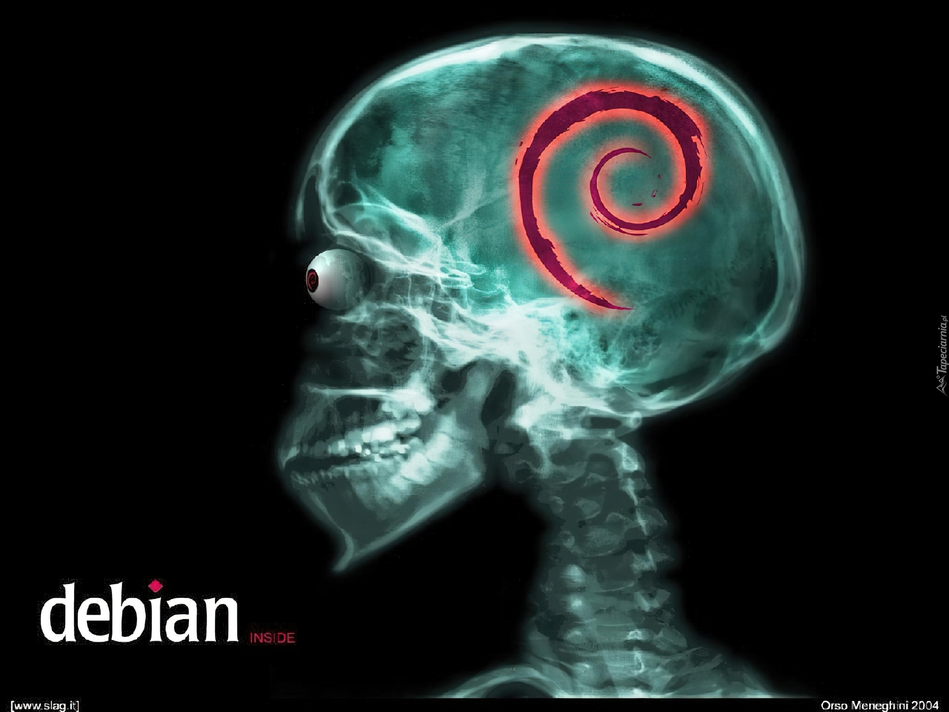 Edytor tapety: Linux Debian, ślimak, zawijas, muszla, grafika, rentgen, czaszka
