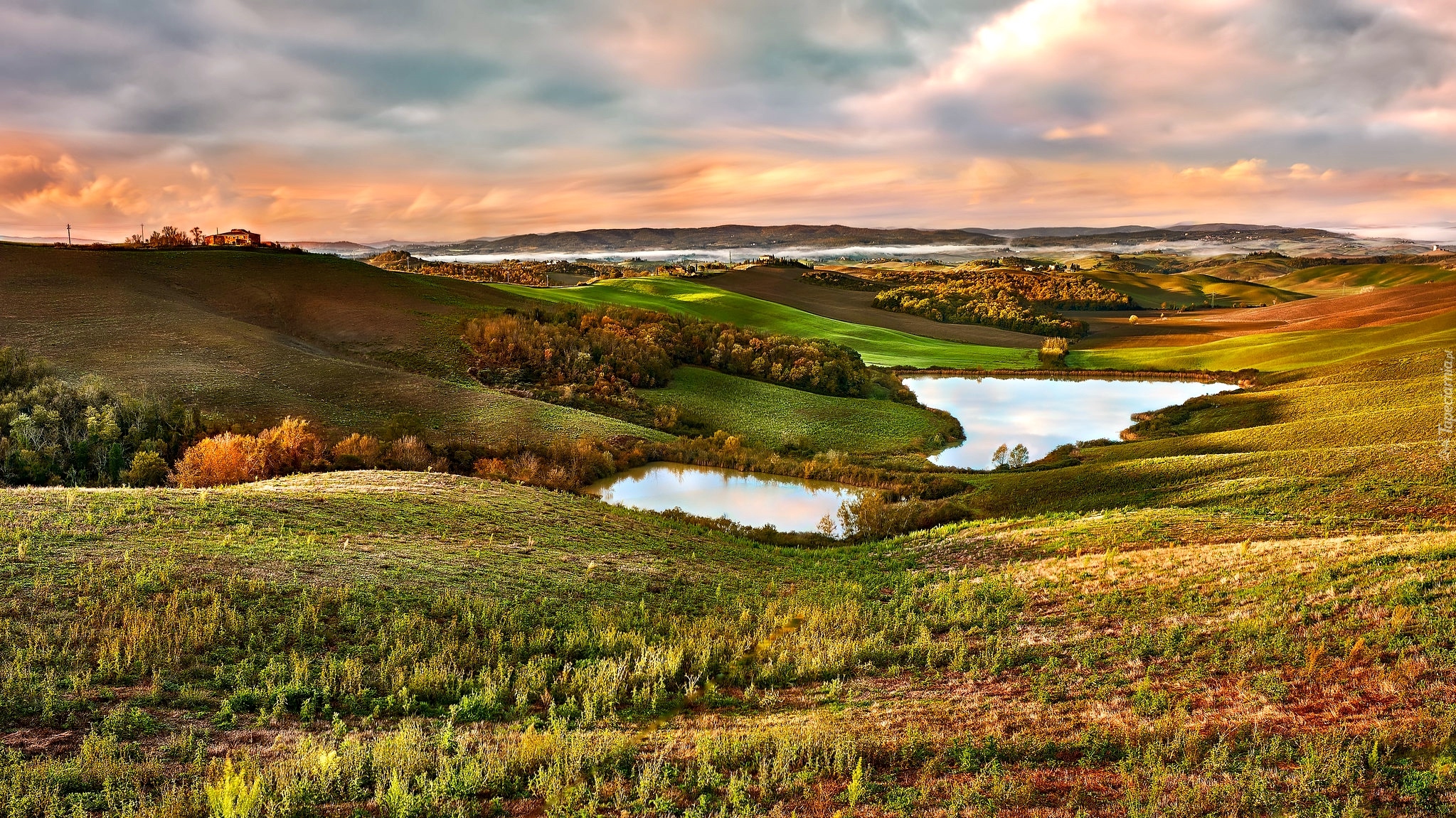 Edytor tapety: Wzgórza i jeziora w Toskanii we Włoszech