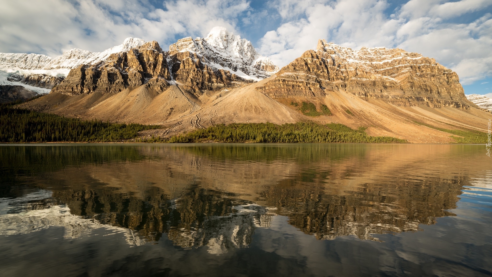 Edytor tapety: Lasy u podnóża gór nad jeziorem