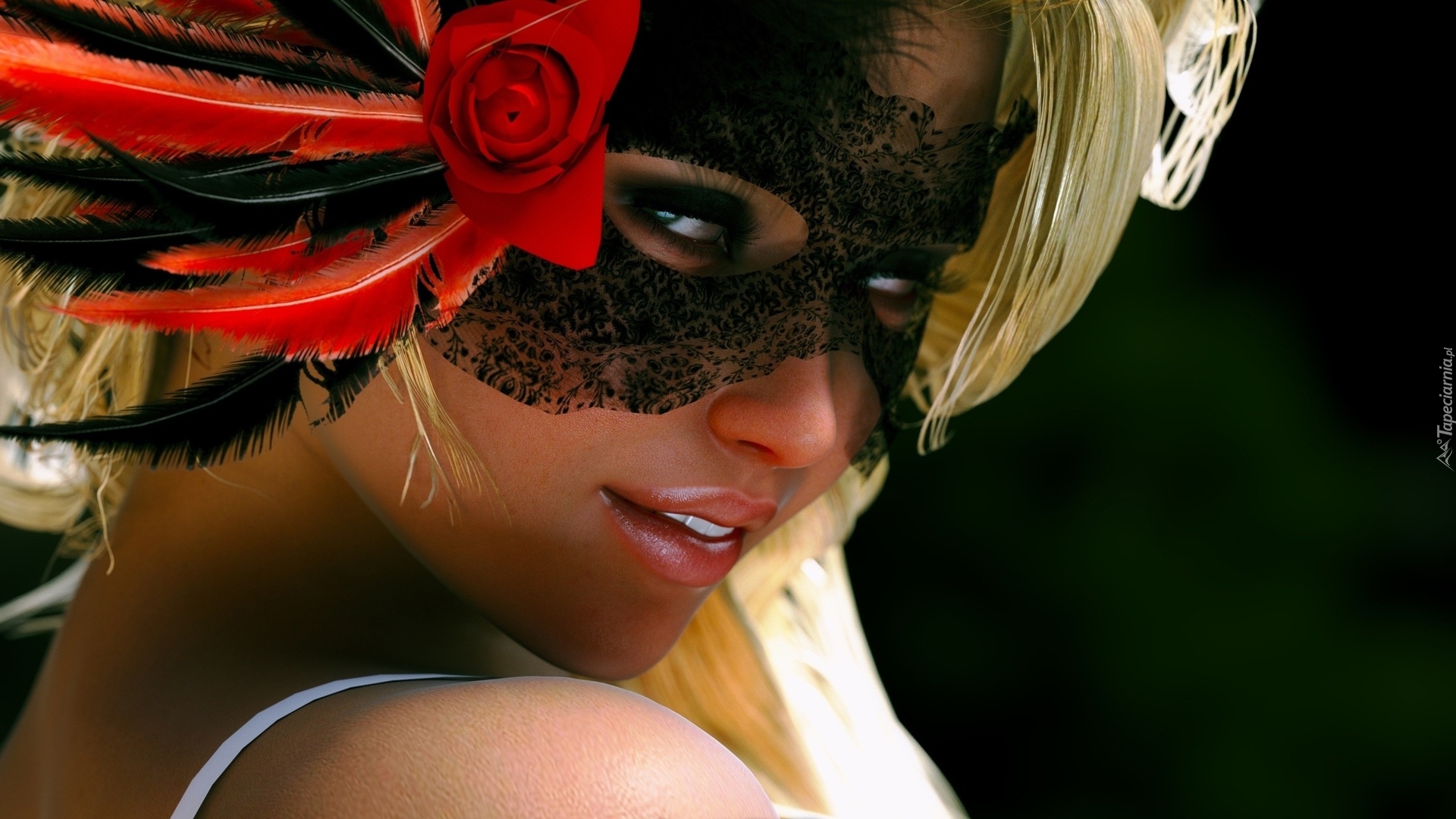 Edytor tapety: Dziewczyna w masce na zielonym tle