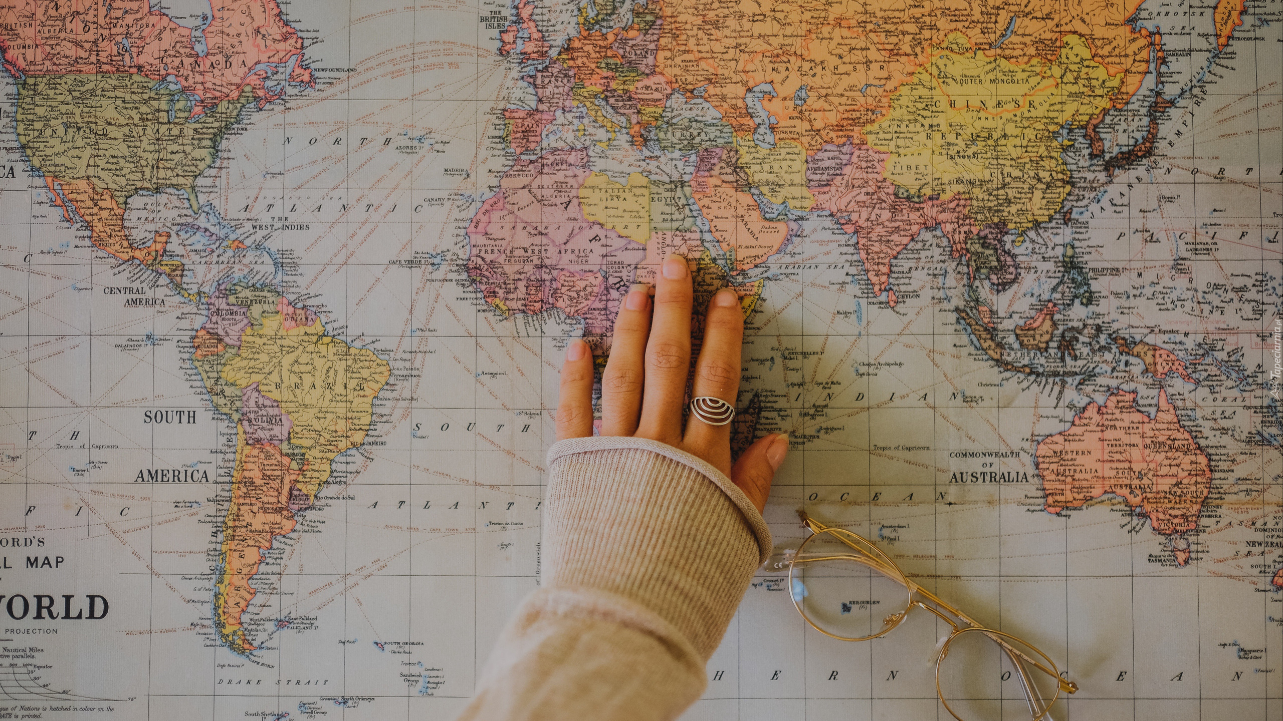 Edytor tapety: Kobieca dłoń i okulary na mapie