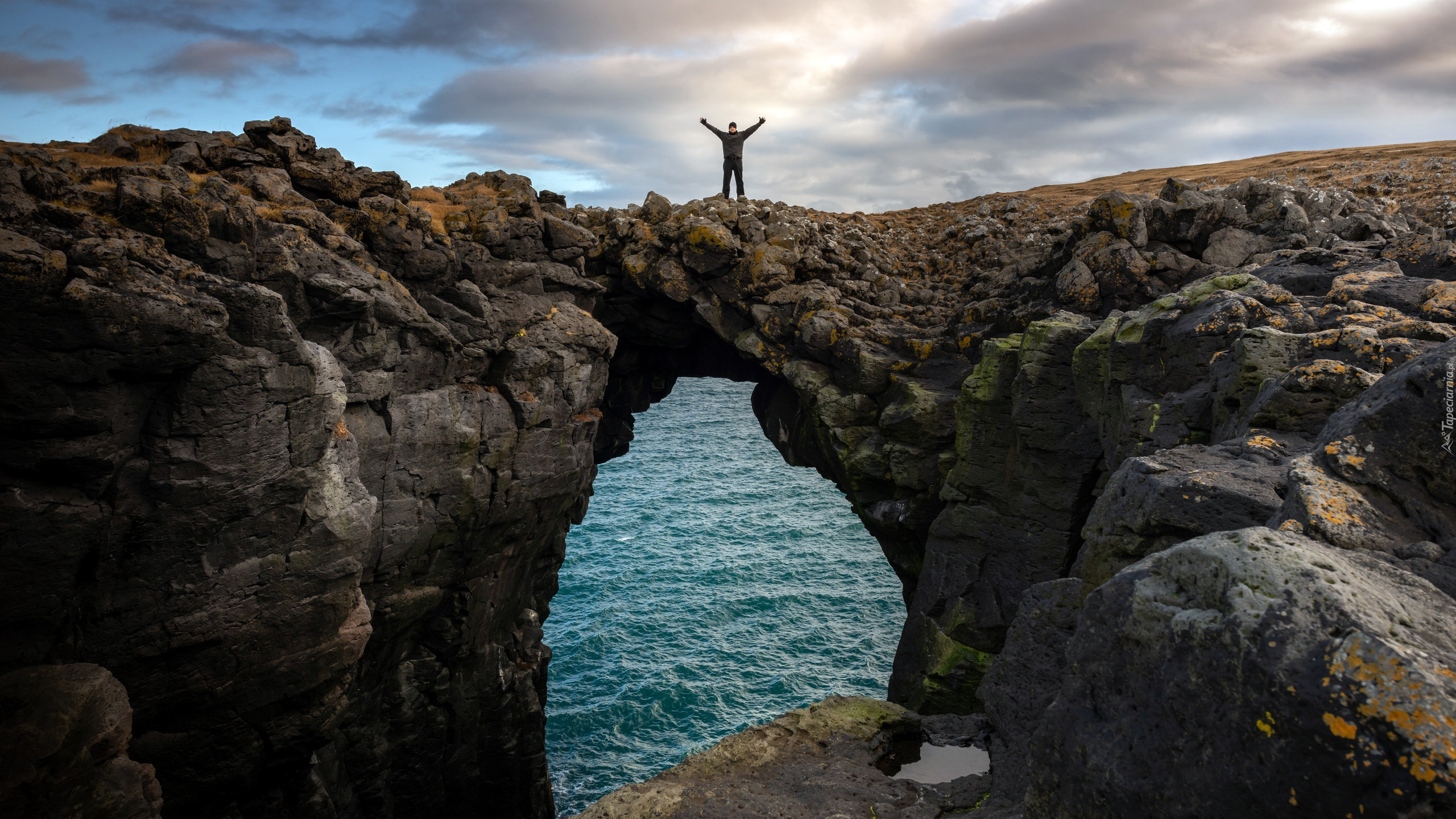 Edytor tapety: Mężczyzna na moście skalnym