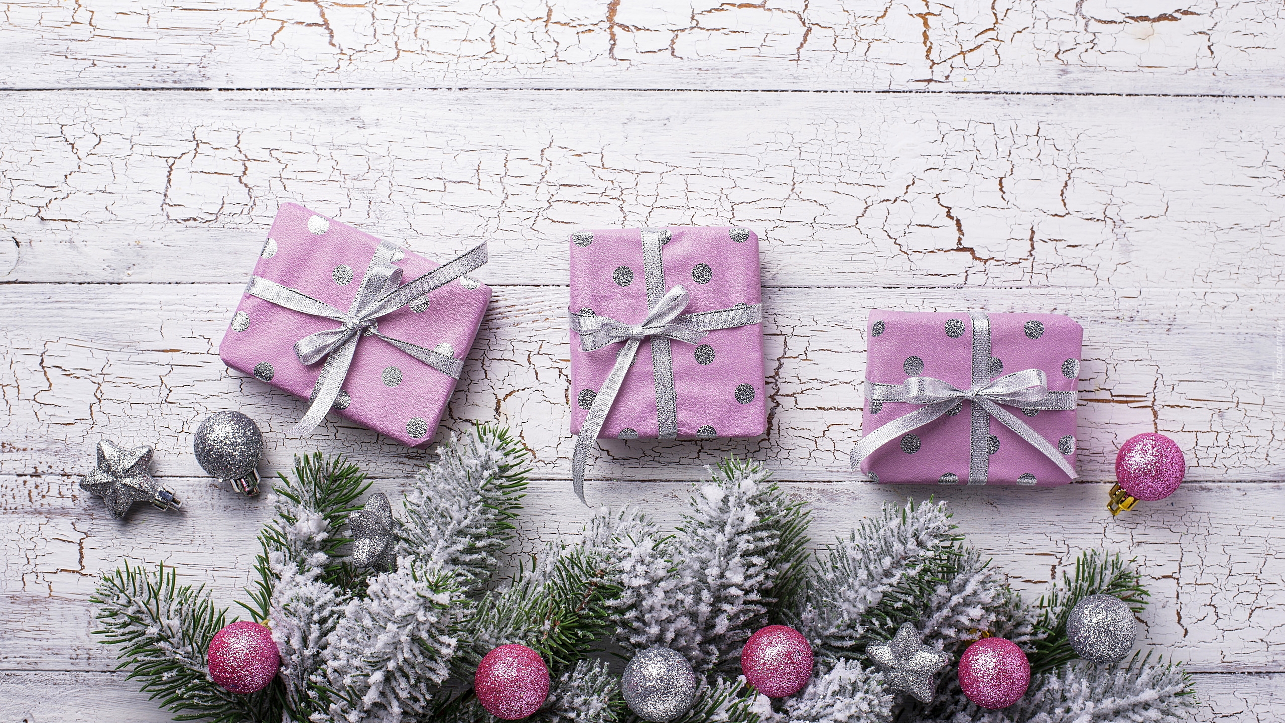 Edytor tapety: Prezenty przy ozdobionych gałązkach