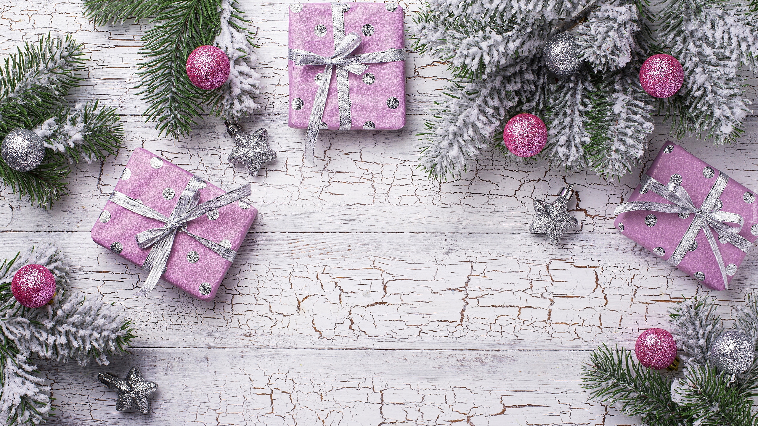 Edytor tapety: Prezenty przy gałązkach oprószonych śniegiem