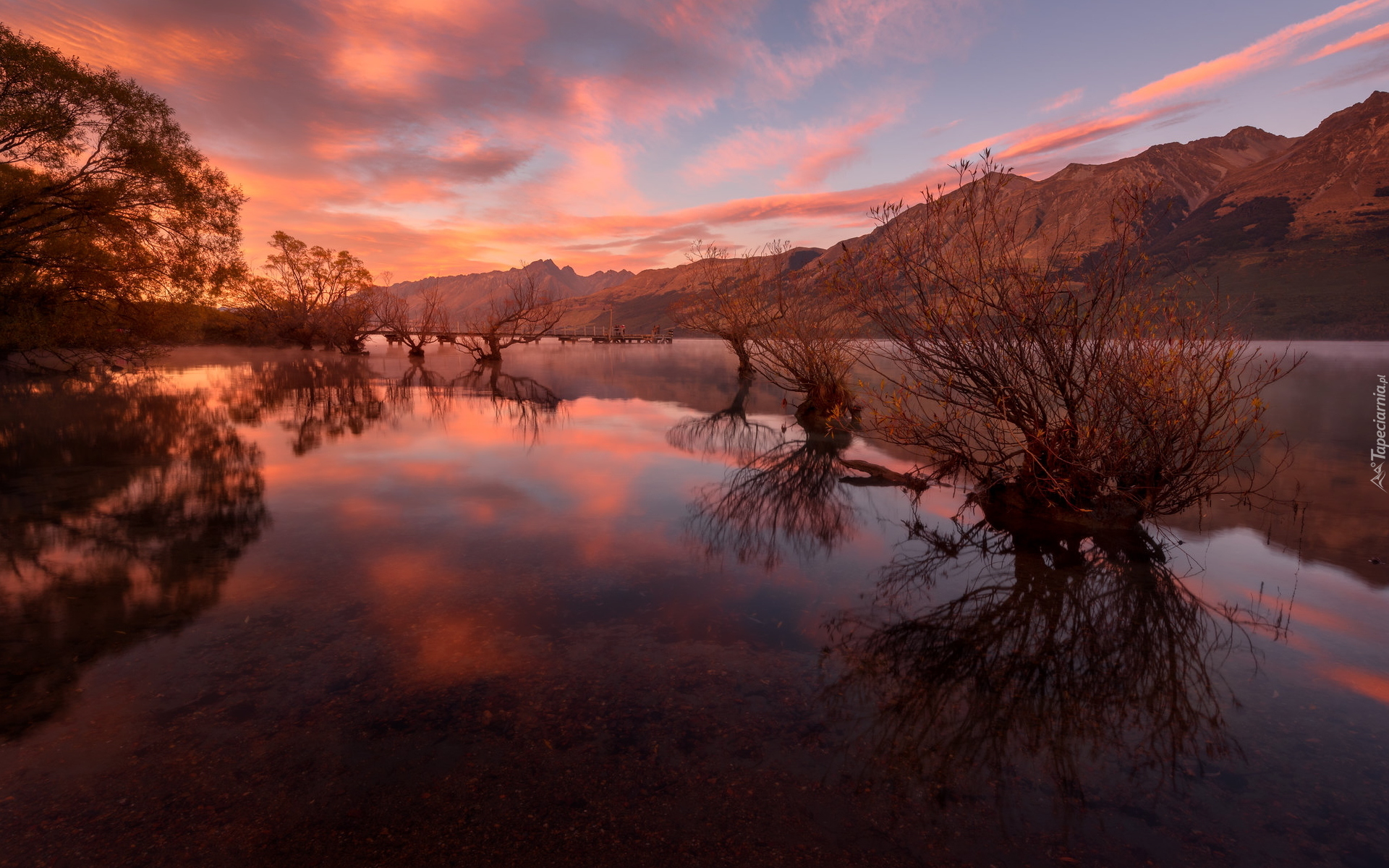 Edytor tapety: Drzewa w jeziorze Wakatipu
