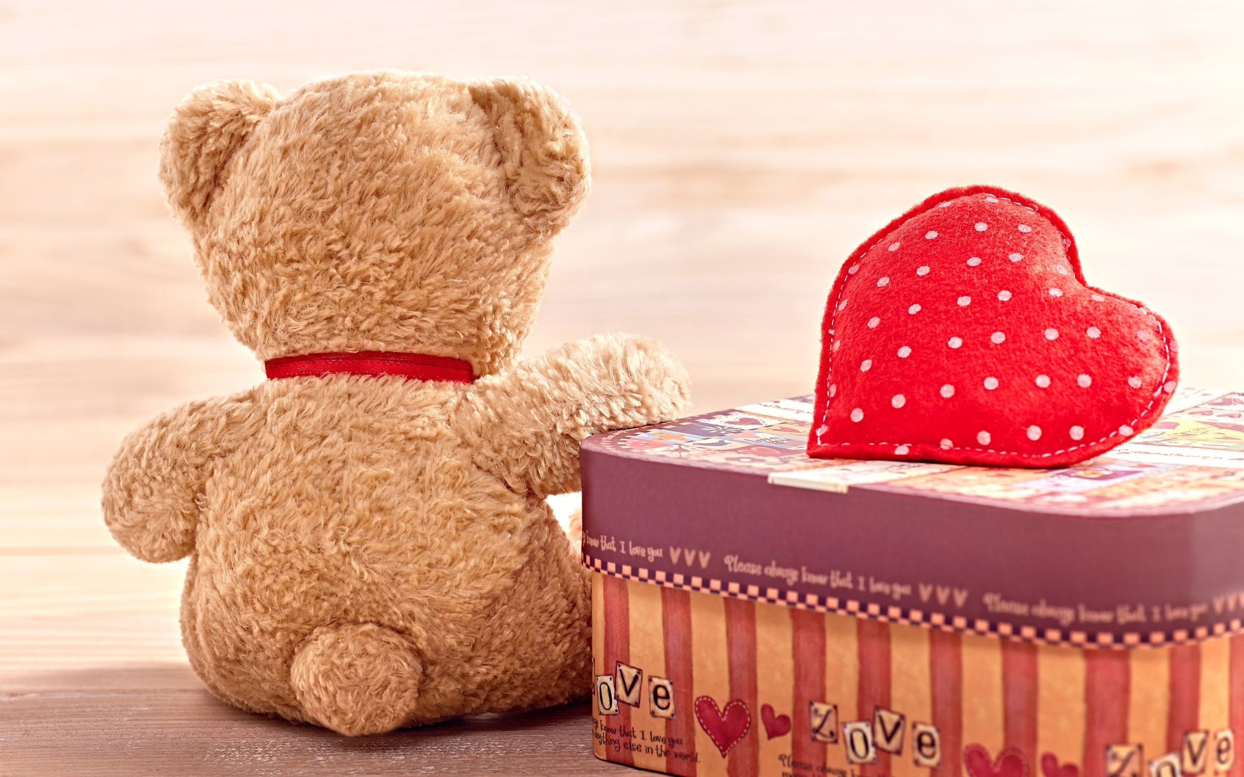 Edytor tapety: Pluszowy miś obok pudełka i serduszka