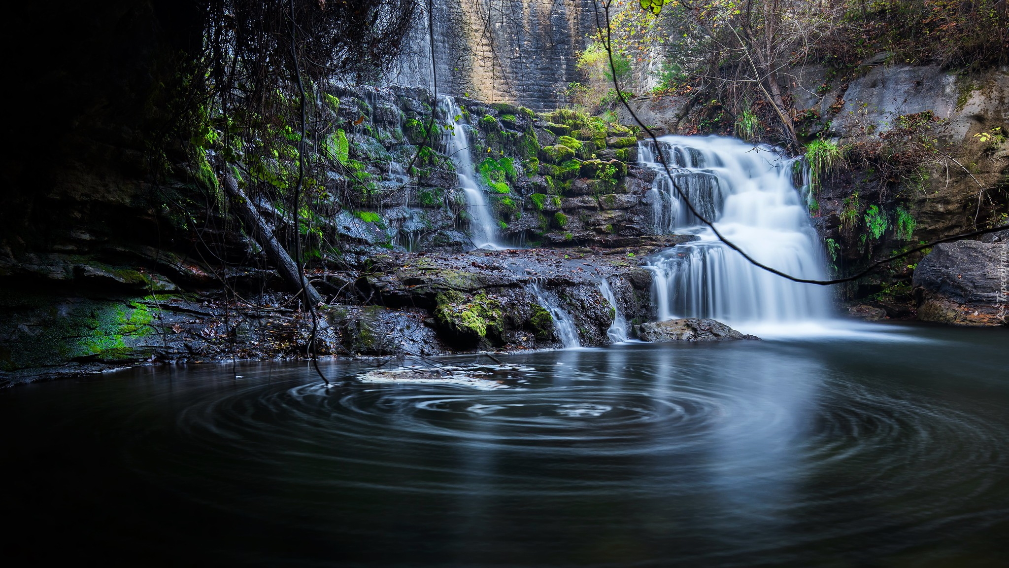Edytor tapety: Wodospad na skałach wpadający do rzeki