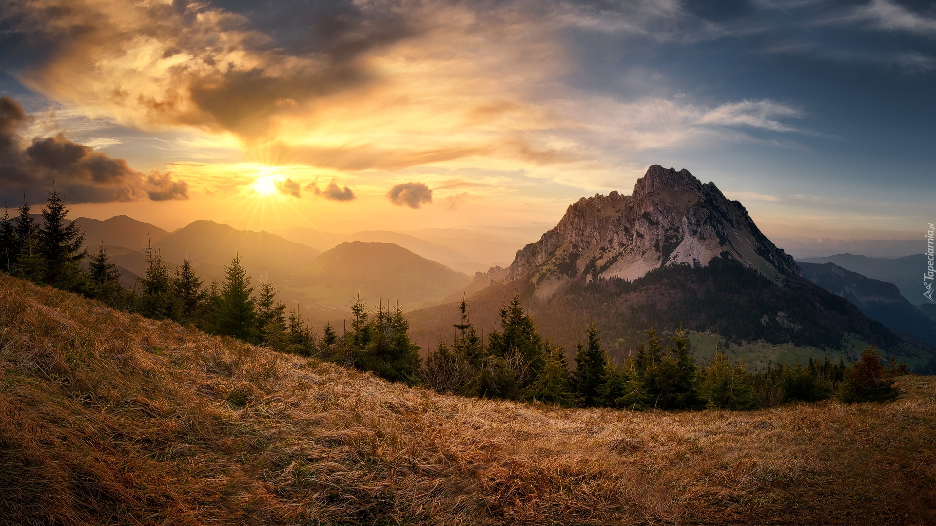 Edytor tapety: Zachód słońca nad Małą Fatrą w Słowacji