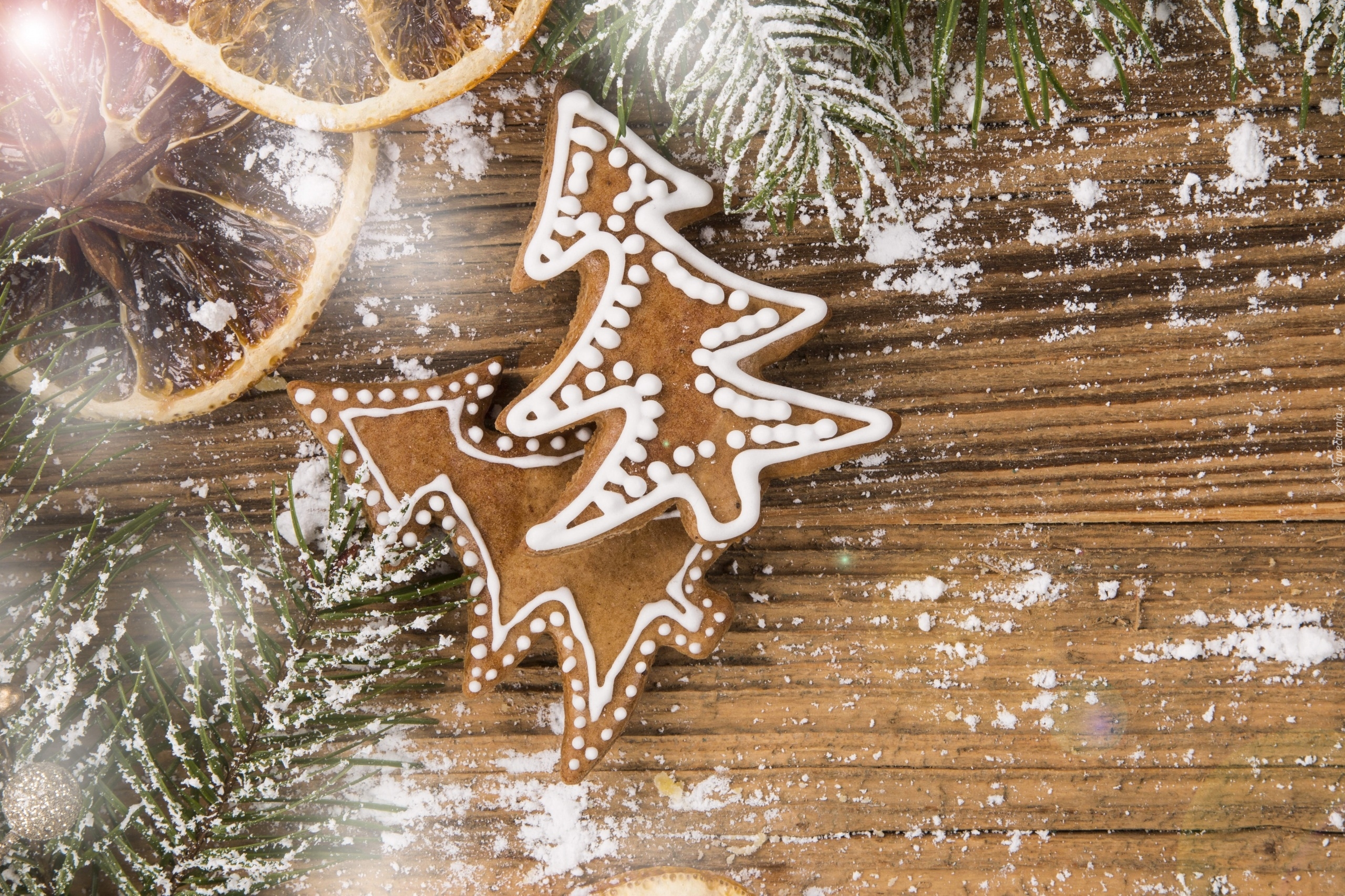 Edytor tapety: Pierniczki w kształcie choinek obok zielonych gałązek