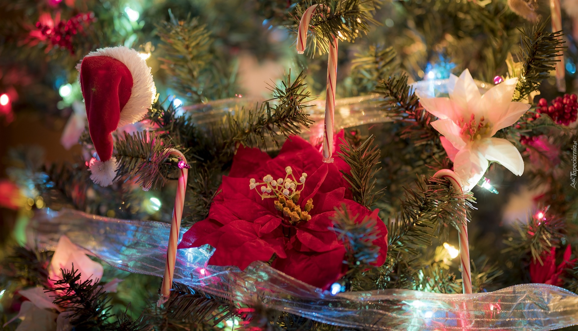 Edytor tapety: Gwiazda betlejemska wśród ozdób na choince
