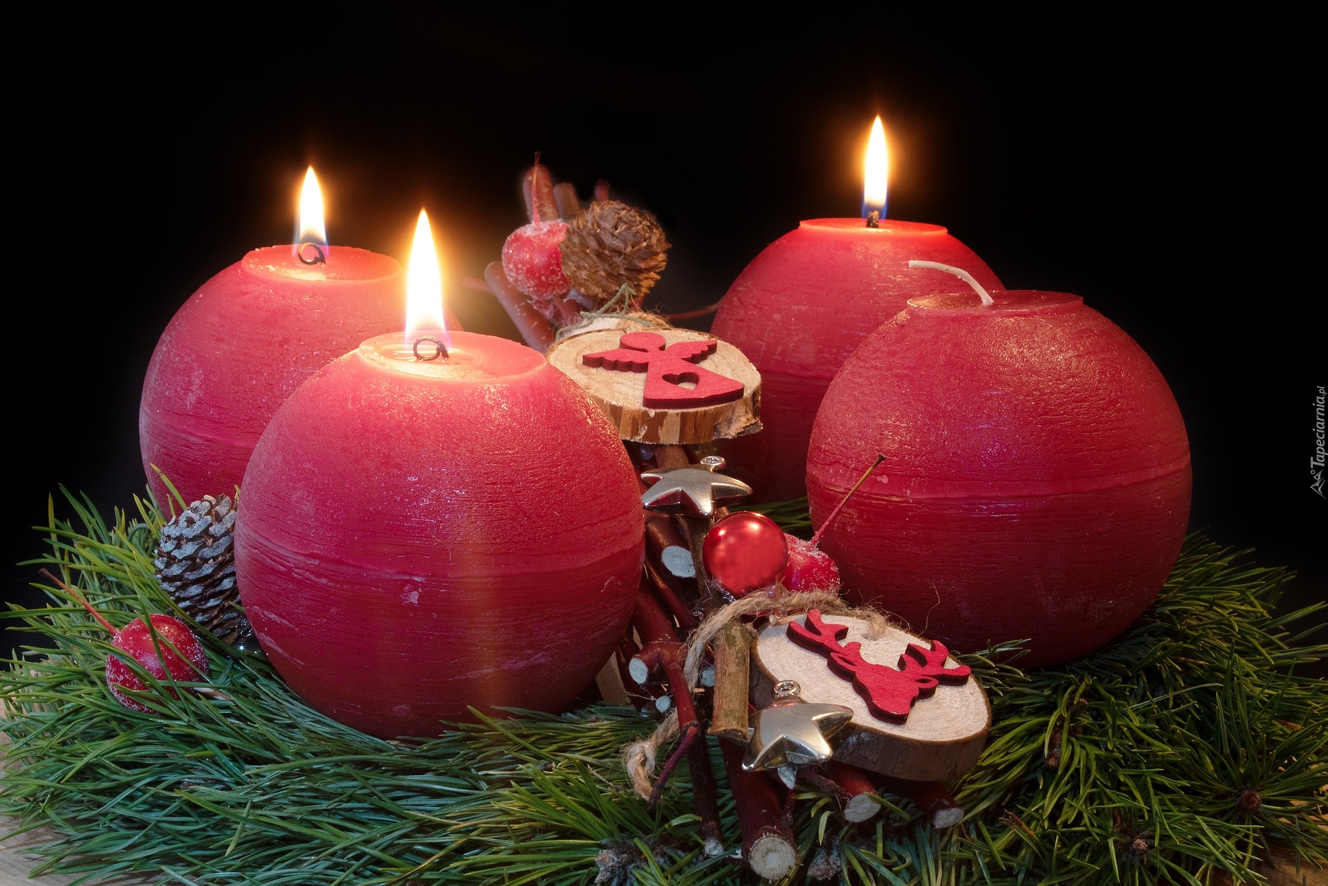 Edytor tapety: Cztery świece na gałązkach