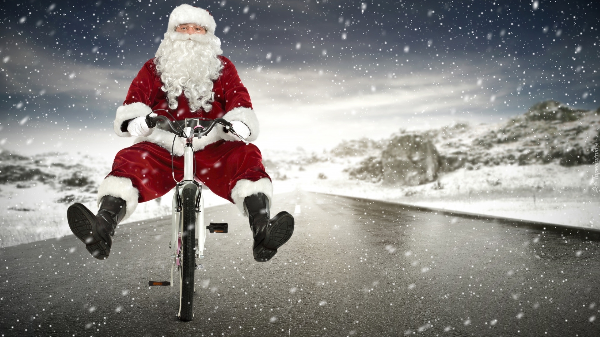 Edytor tapety: Mikołaj na rowerze
