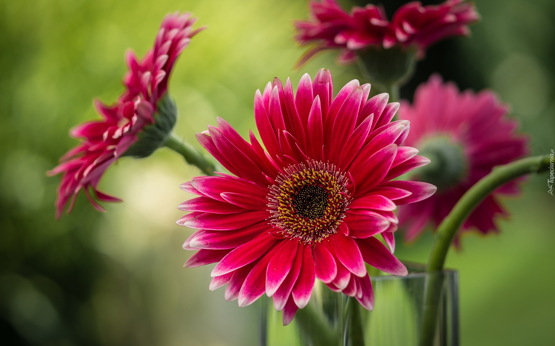 Edytor tapety: Czerwone gerbery na zielonym tle