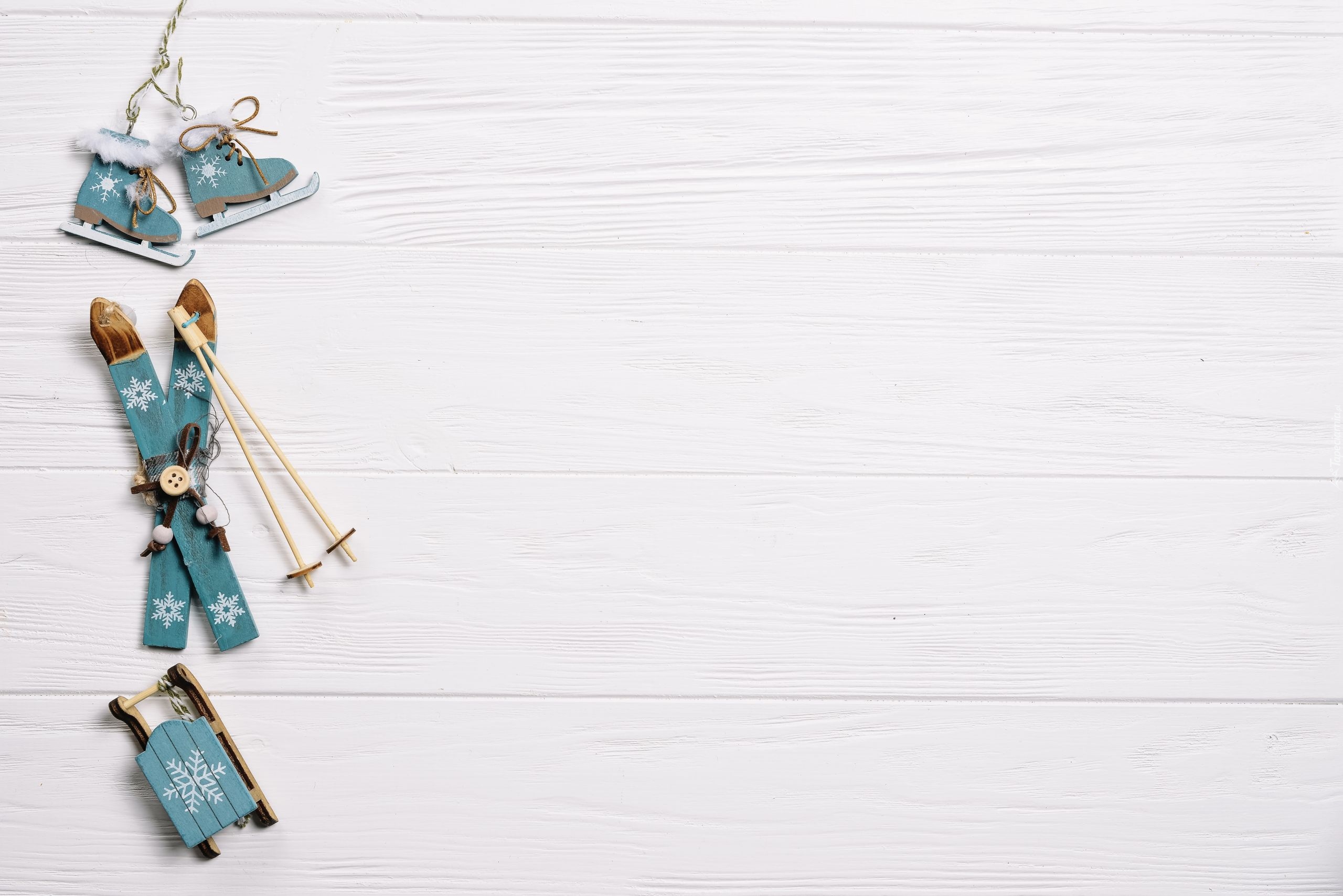 Edytor tapety: Dekoracyjne narty obok sanek i łyżew