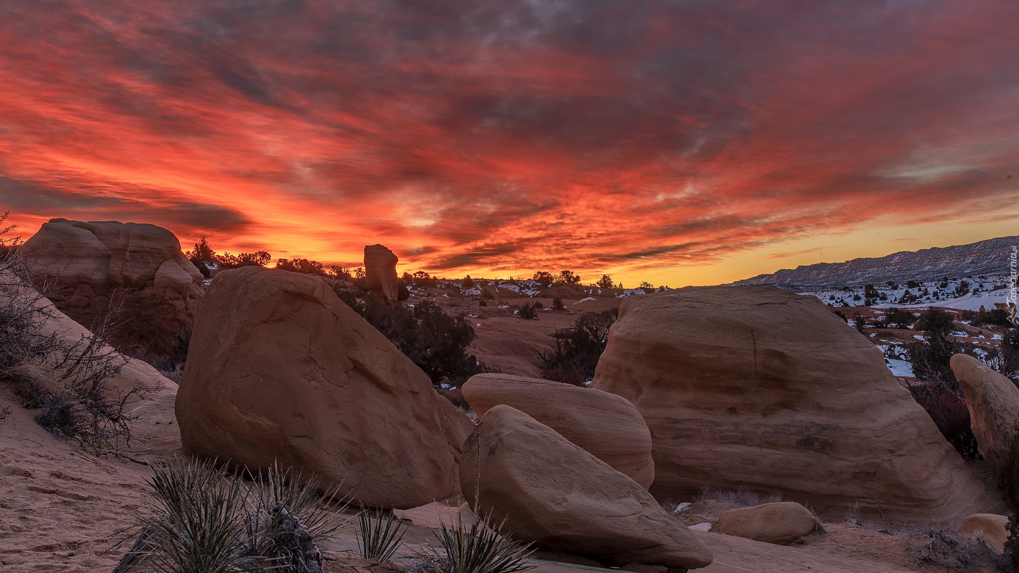 Edytor tapety: Kamienie i głazy pod czerwonym niebem