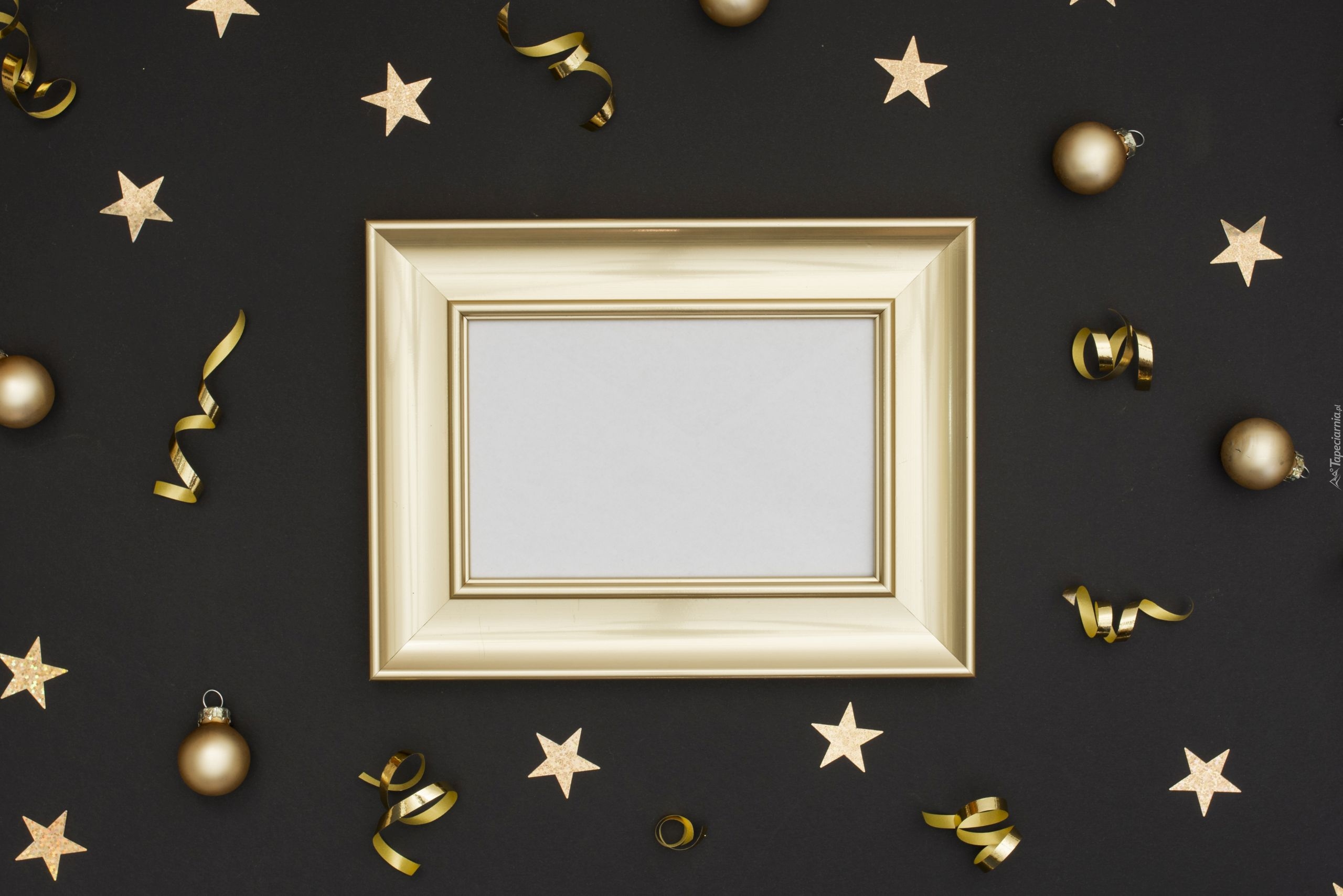 Edytor tapety: Ramka na czarnym tle obok gwiazdek i serpentyn