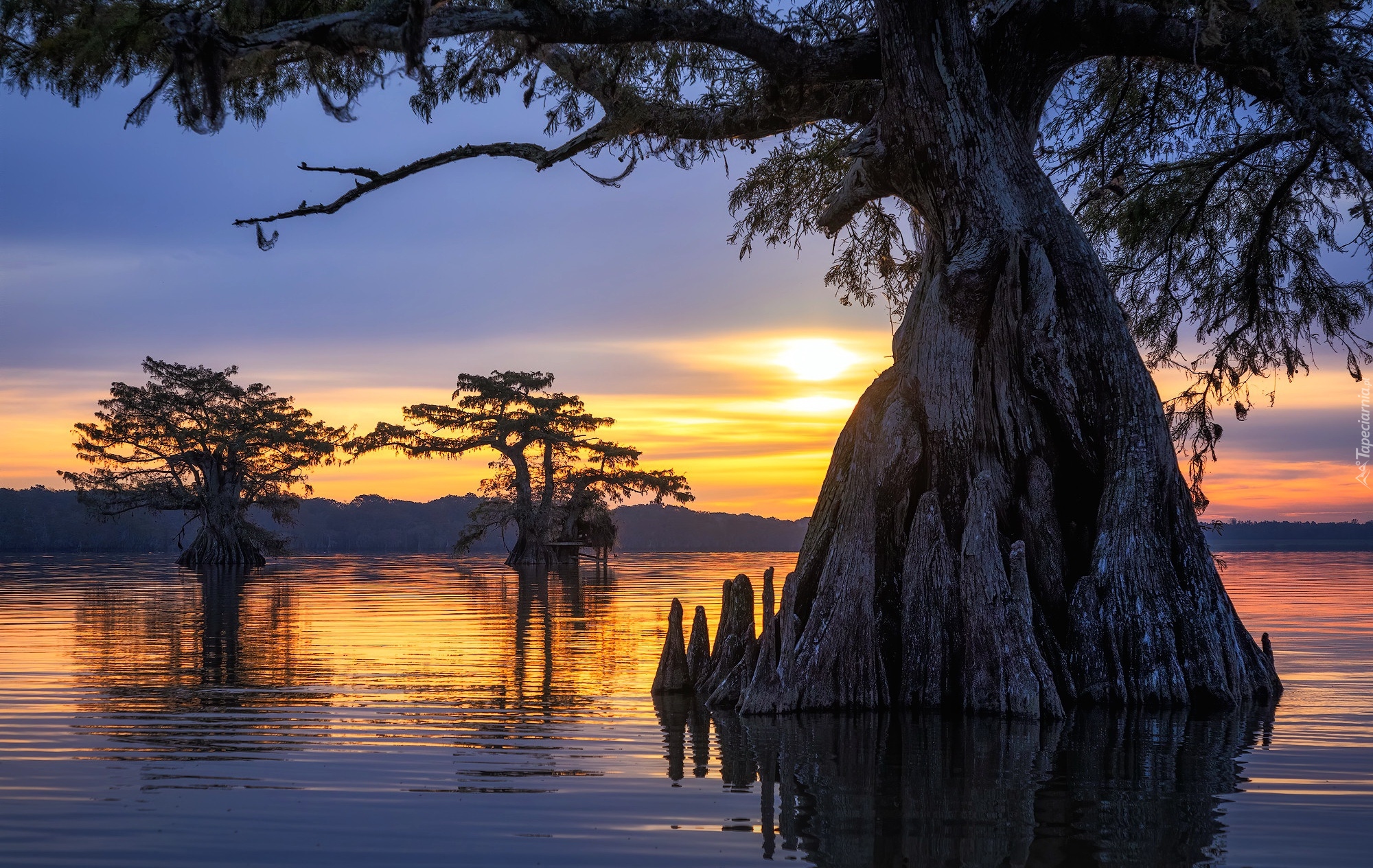 Edytor tapety: Drzewa w jeziorze