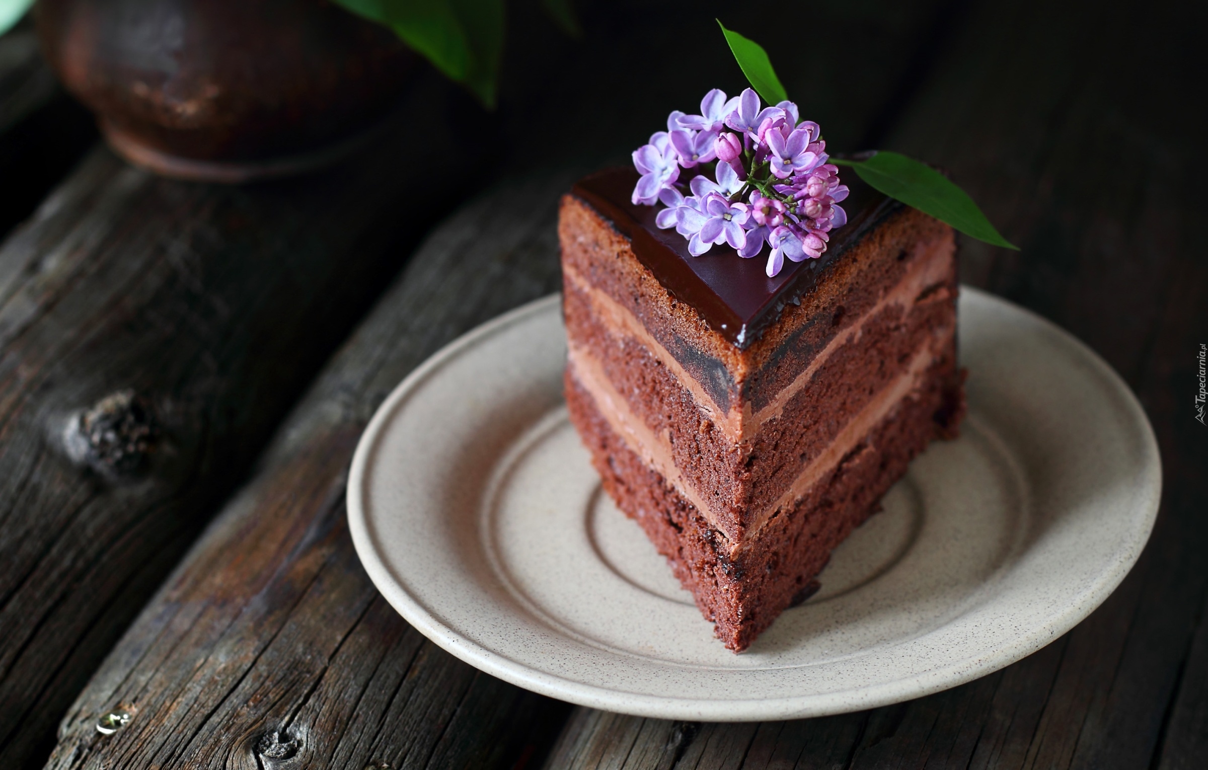 Edytor tapety: Kawałek tortu czekoladowego na talerzyku