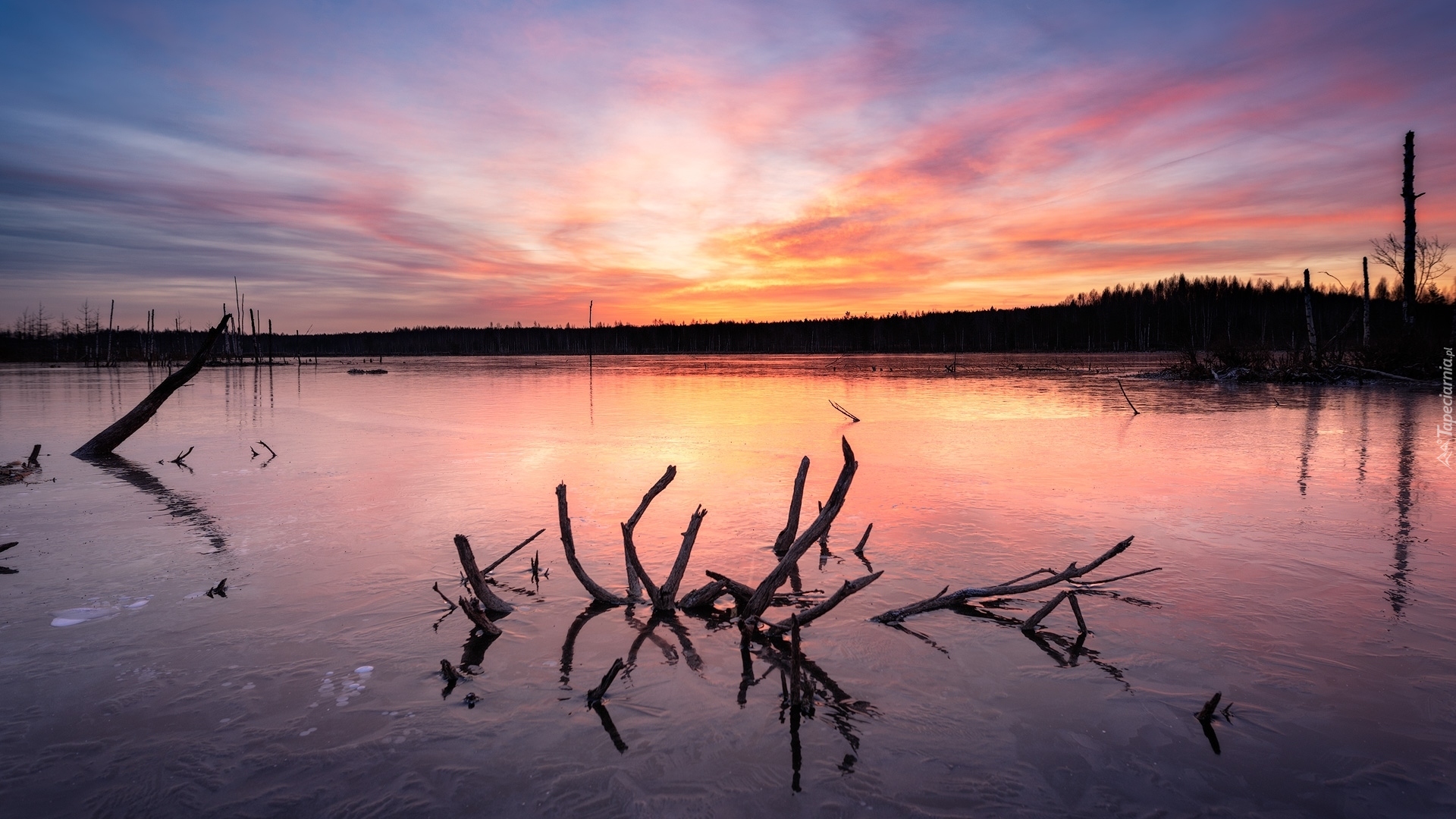 Edytor tapety: Wystające konary z jeziora
