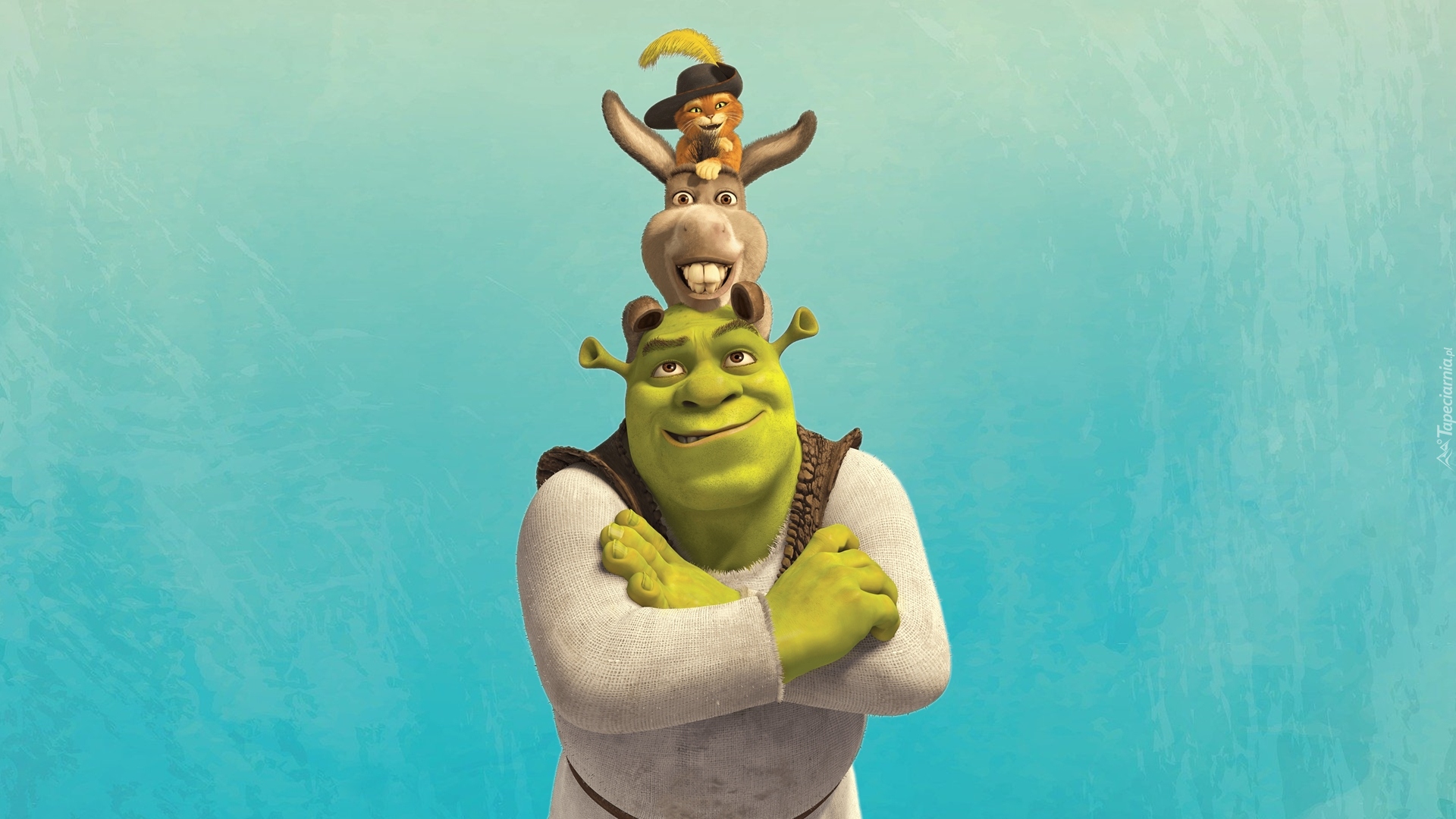 Edytor tapety: Shrek z osiołkiem i kotem w butach