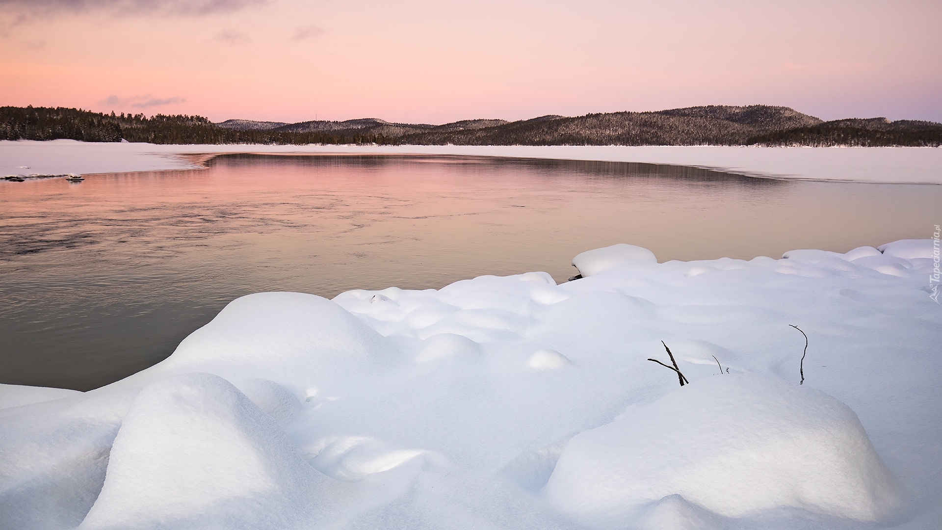 Edytor tapety: Śnieg nad jeziorem