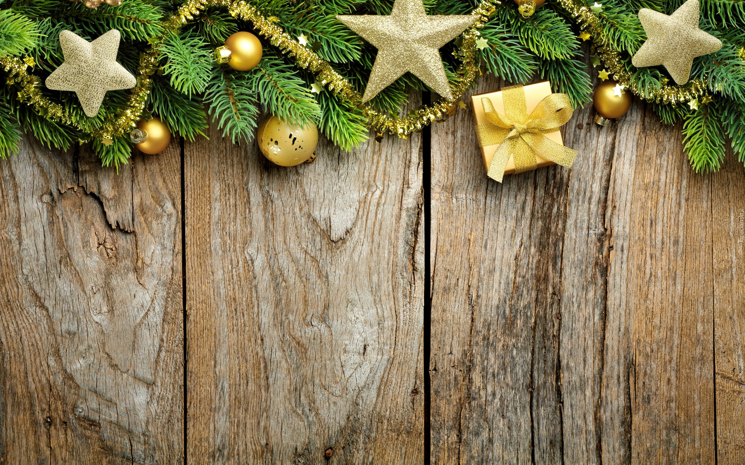Edytor tapety: Bombki i gwiazdki pośród zielonych gałązek