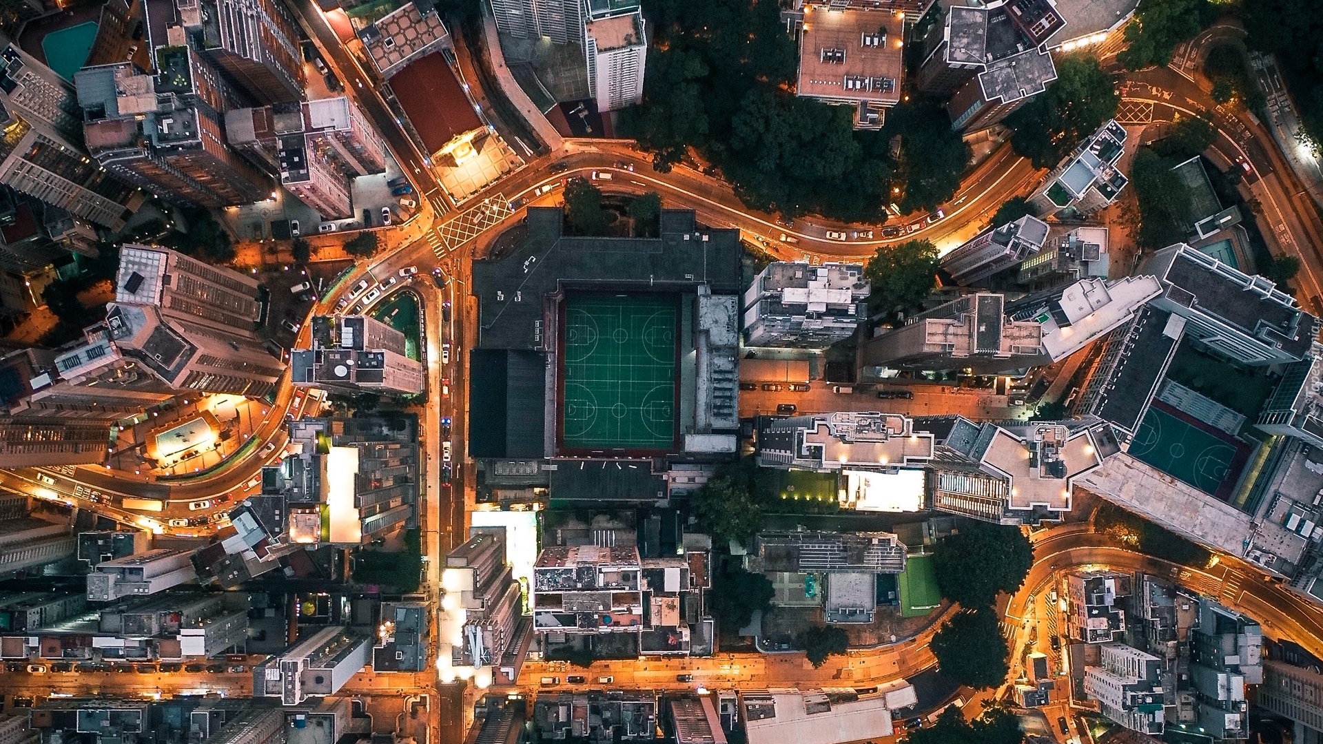Edytor tapety: Boisko w centrum miasta widziane z lotu ptaka