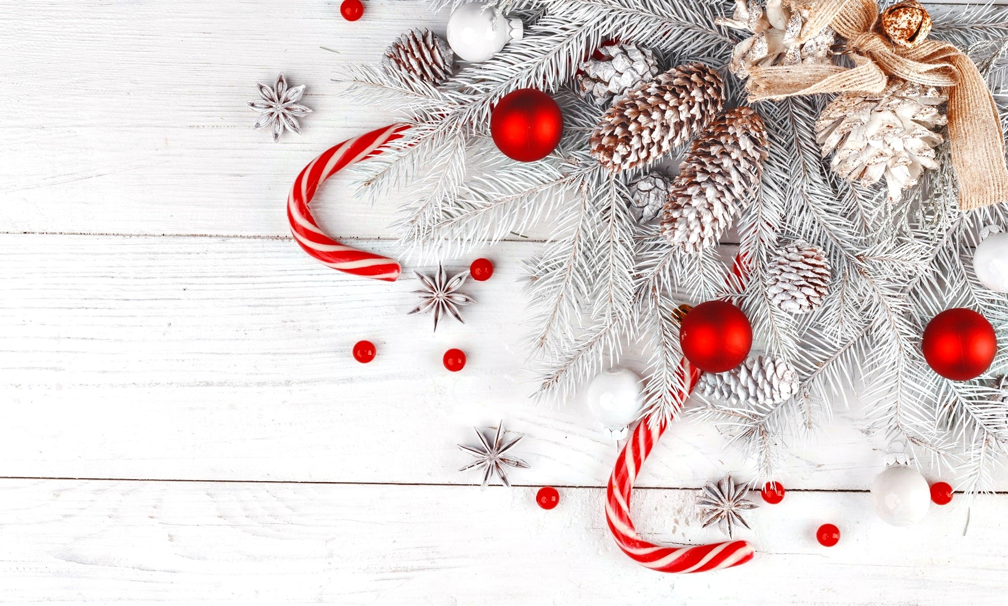 Edytor tapety: Bożonarodzeniowy stroik z bombkami i szyszkami