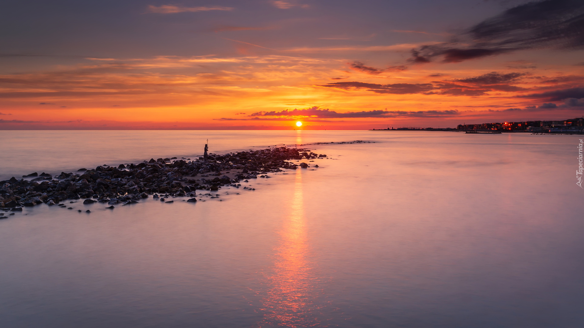 Edytor tapety: Chmury na kolorowym niebie nad morzem