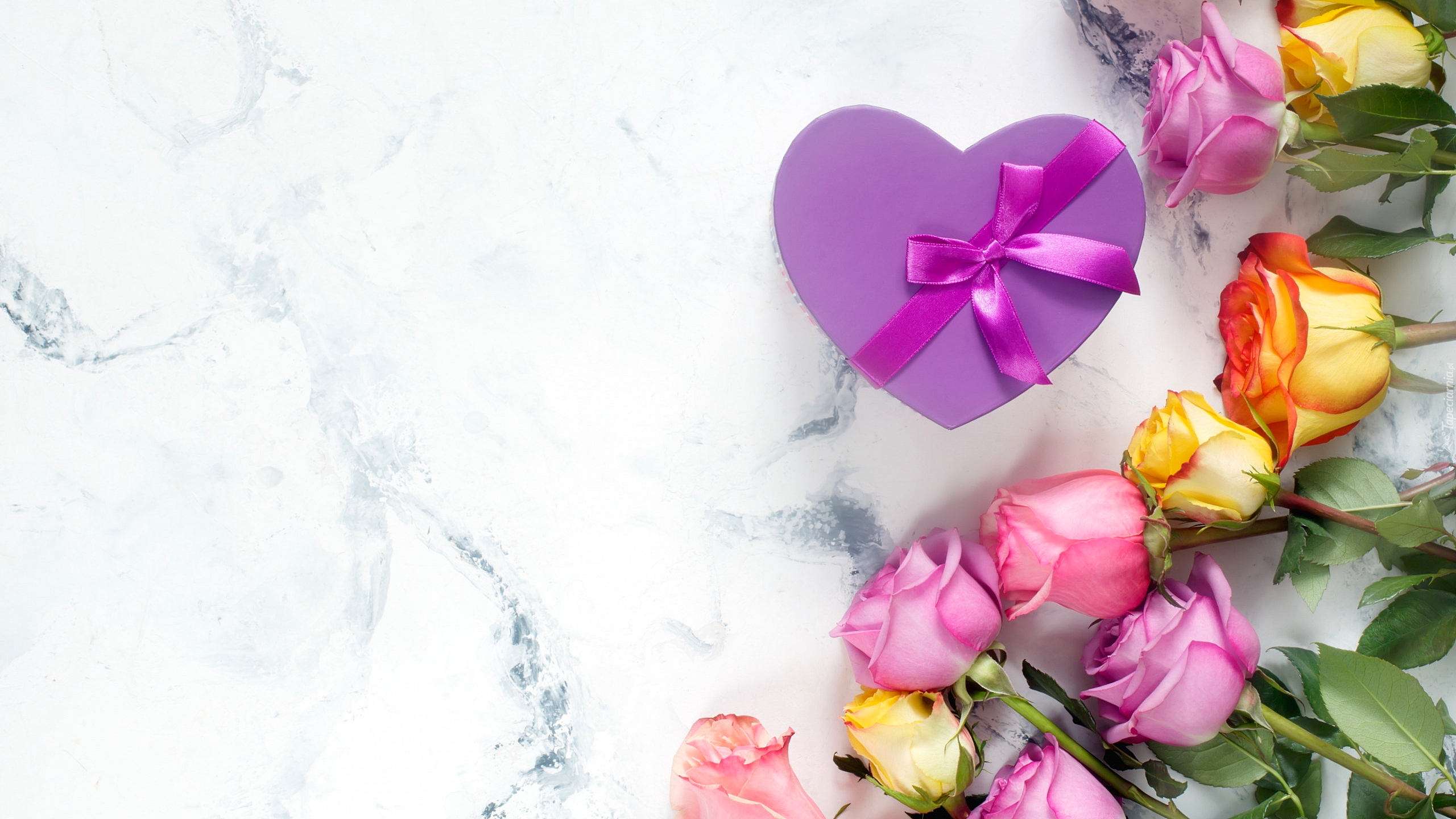 Edytor tapety: Pudełko w kształcie serca obok róż