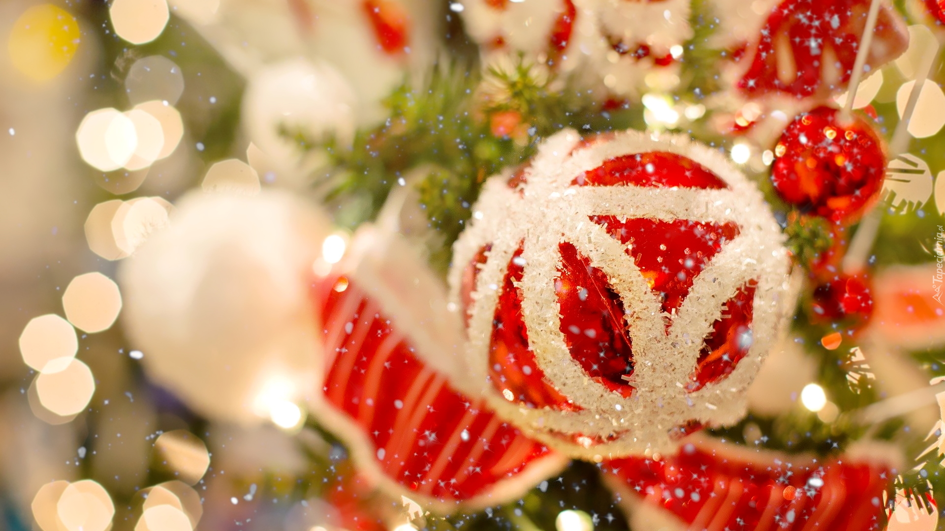 Edytor tapety: Czerwono-biała bombka