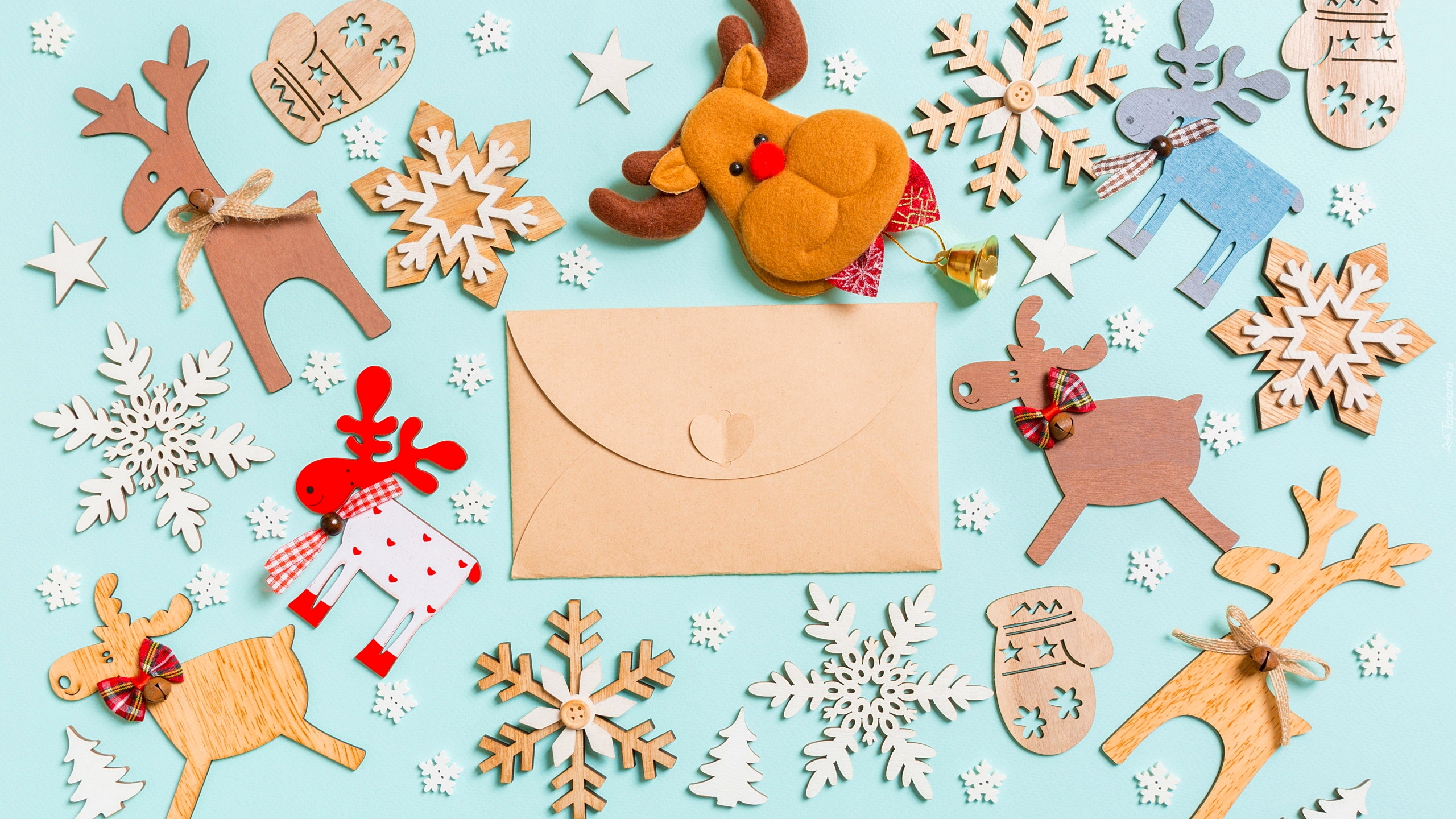 Edytor tapety: Renifery i śnieżynki na niebieskim tle