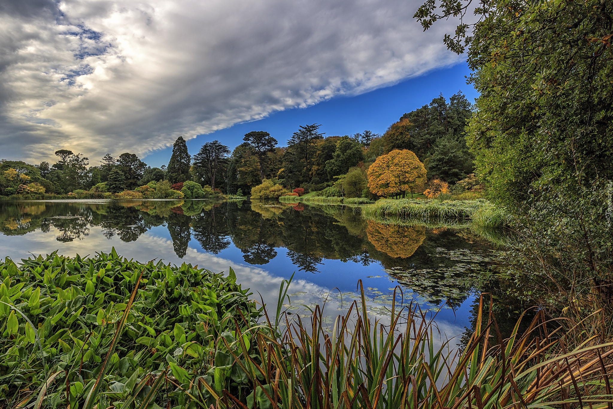 Edytor tapety: Rośliny i drzewa wokół jeziora